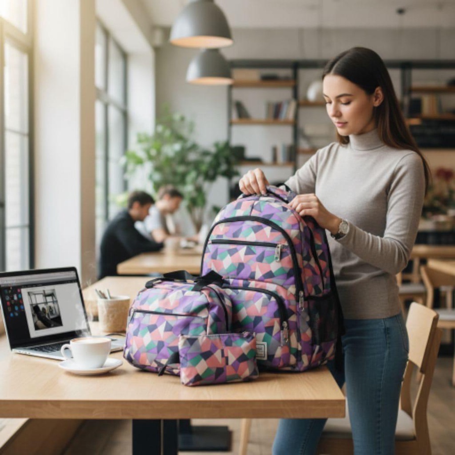 شنطة باك مقاومة للماء بنقوش ملونة 3 قطع تصميم عصرى ومساحة واسعة
