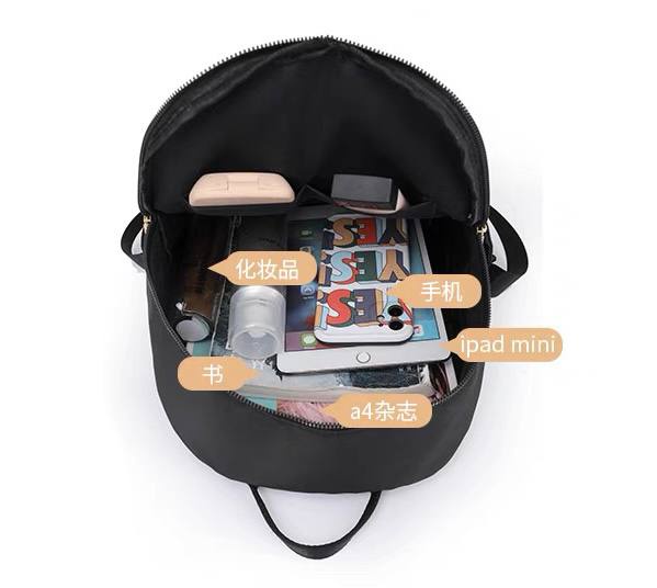 شنطة الظهر الميني دي هي تعريف "السهل الممتنع". حجمها صغير وكيوت (Mini Size) بس بتشيل كل اللي تحتاجيه في خروجة سريعة: موبايل، محفظة، ميكب، ومفاتيح. التصميم المبطن (Quilted) بيديها فخامة، والكباسين الدهبي (Studs) بتضيف لمسة شقاوة وعصرية.