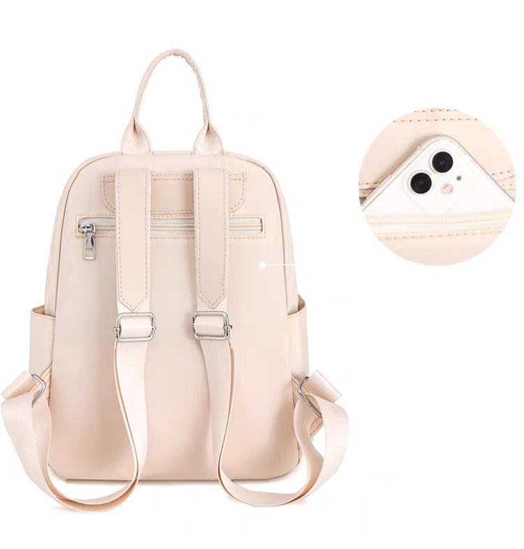 الشنطة فيها جيب أمامي بسوستة للمفاتيح أو الحاجات الصغيرة، وجيوب جانبية، واللون الأزرق البترولي بتاعها شيك جداً وبيليق على معظم لبس الجامعة والكاجوال. خفيفة على الظهر ومش هتحسي بيها وانتي لابساها طول اليوم.
