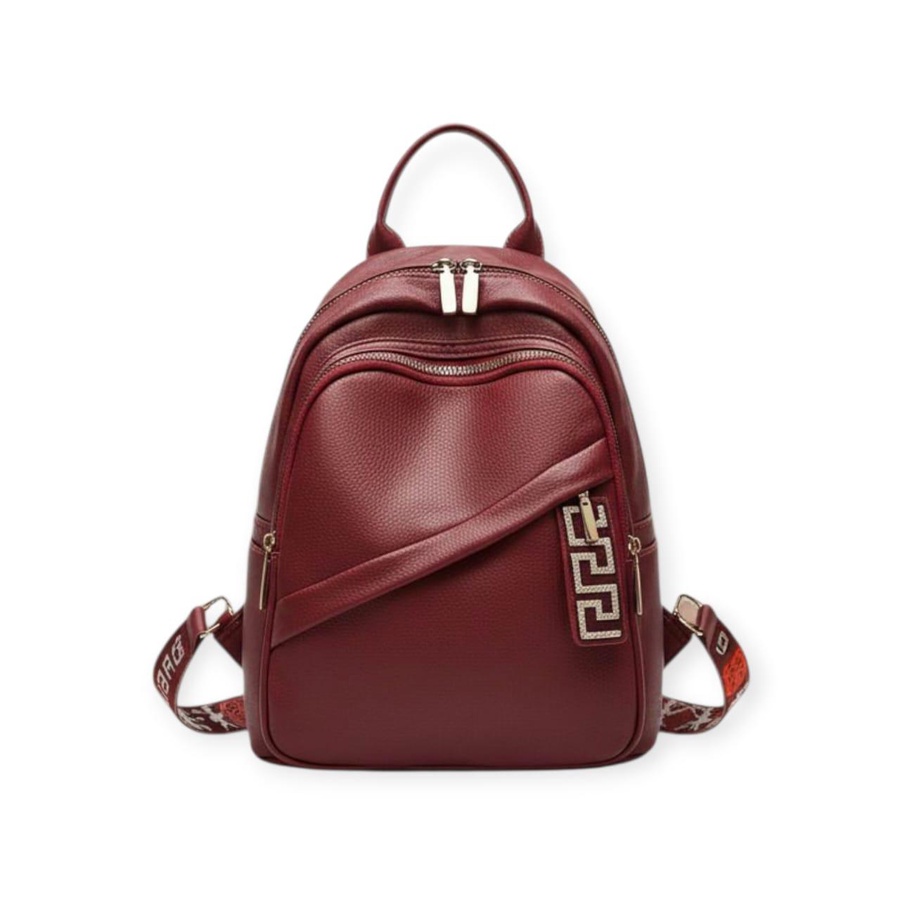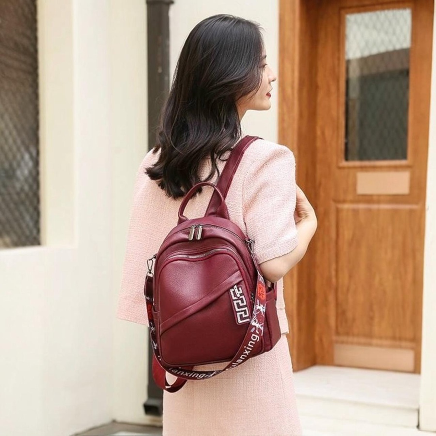 شنطة ظهر حريمى جلد كاجوال متعددة الجيوب بسحاب، حزام كتف عريض منقوش وخامة متينة، مناسبة للجامعة، الشغل والخروجات اليومية وتنظيم المتعلقات.
