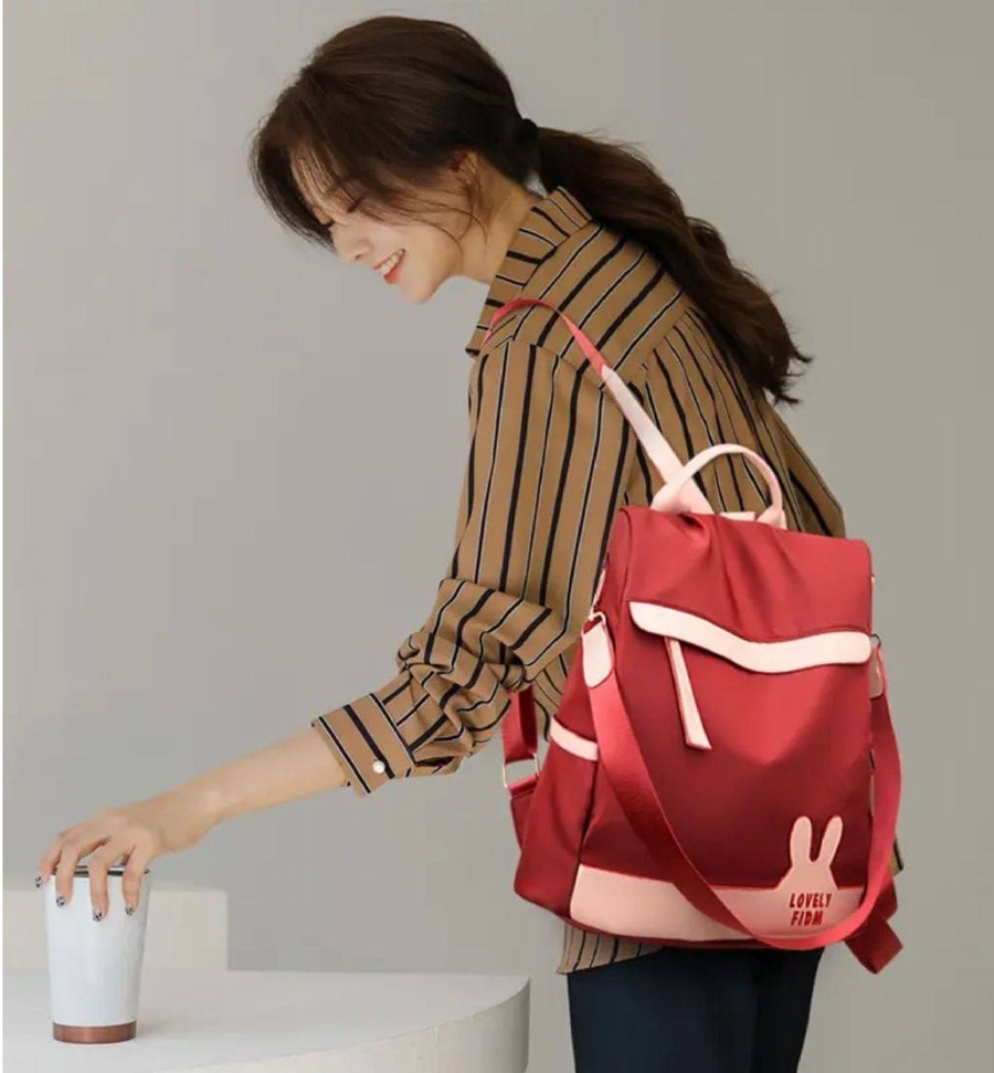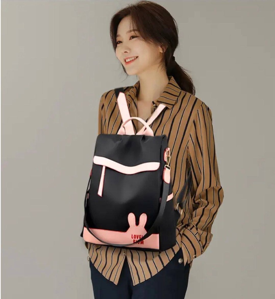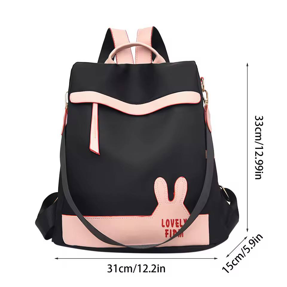 شنطة ظهر حريمى كاجوال بتصميم أرنب لطيف، خامة متينة مقاومة للماء مع جيب أمامى بسحاب وجيوب جانبية، مناسبة للجامعة، الشغل والخروجات اليومية.