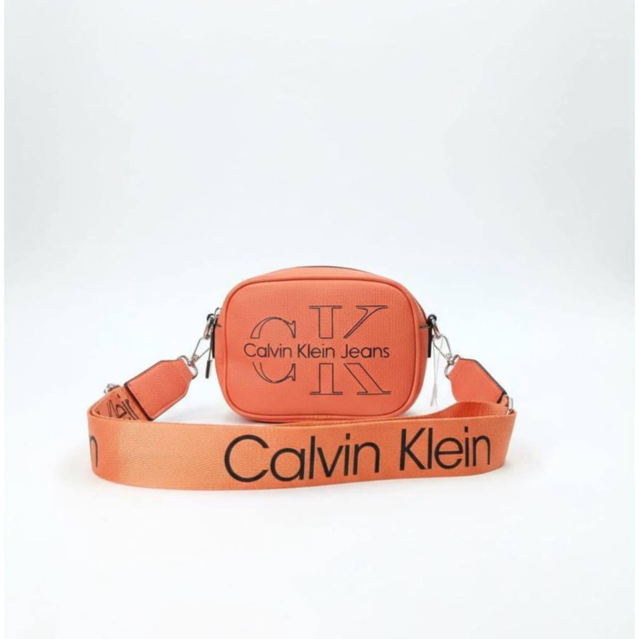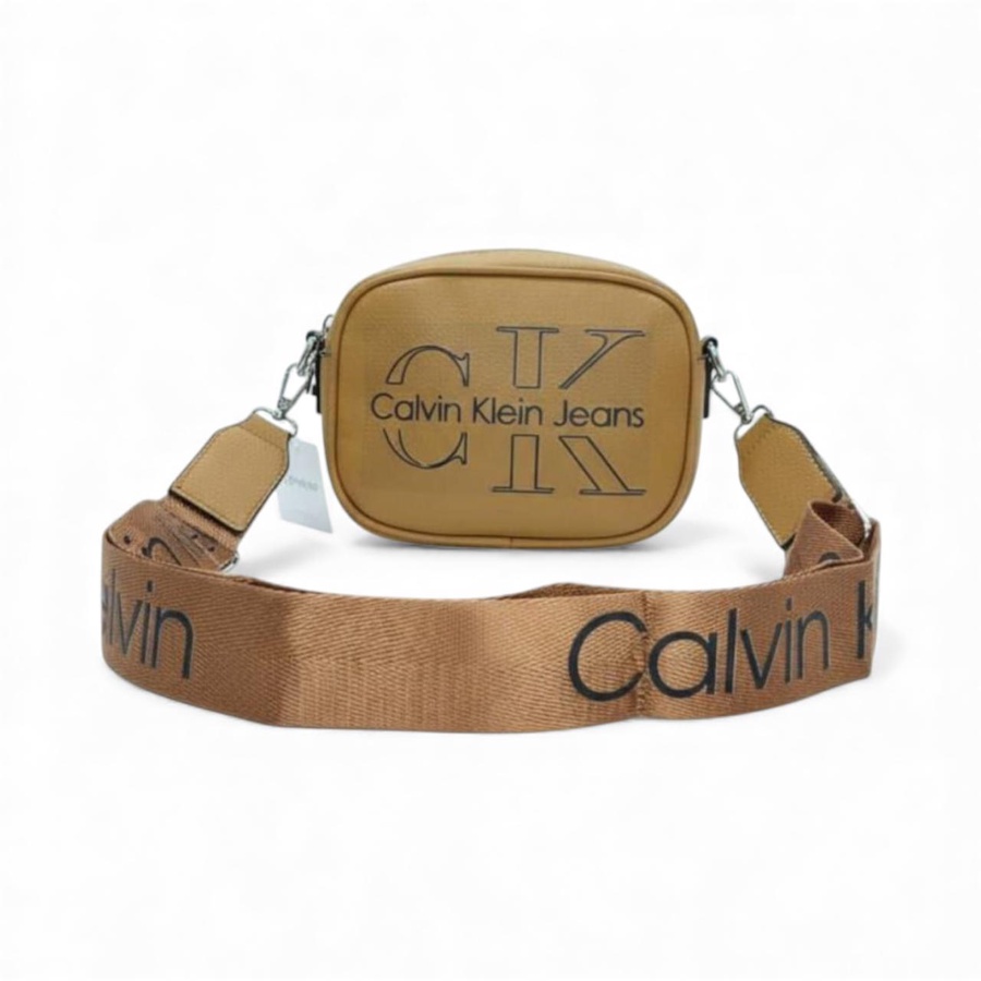 شنطة كروس حريمي جلد صغيرة Calvin Klein بتصميم عصري وحزام عريض بشعار الماركة، حجم عملي للموبايل والمحفظة والأساسيات، مناسبة للخروجات اليومية للبنات .