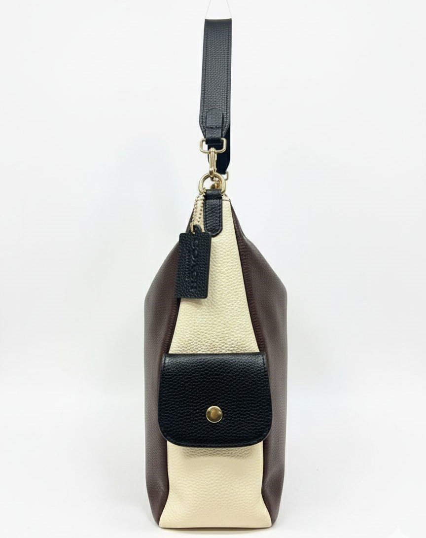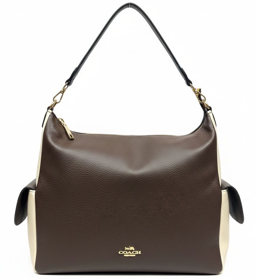 شنطة كتف أنيقة من Coach ولمسات معدنية ذهبية تضيف لمسة راقية لإطلالتك اليومية. تتميز بمساحة داخلية واسعة تناسب احتياجاتك اليومية، مع مقبض علوي مريح وحزام كتف طويل قابل للتعديل لخيارات حمل متعددة. مثالية للعمل أو الخروج اليومي وتكمل مختلف الإطلالات بأسلوب أنيق وعصري.