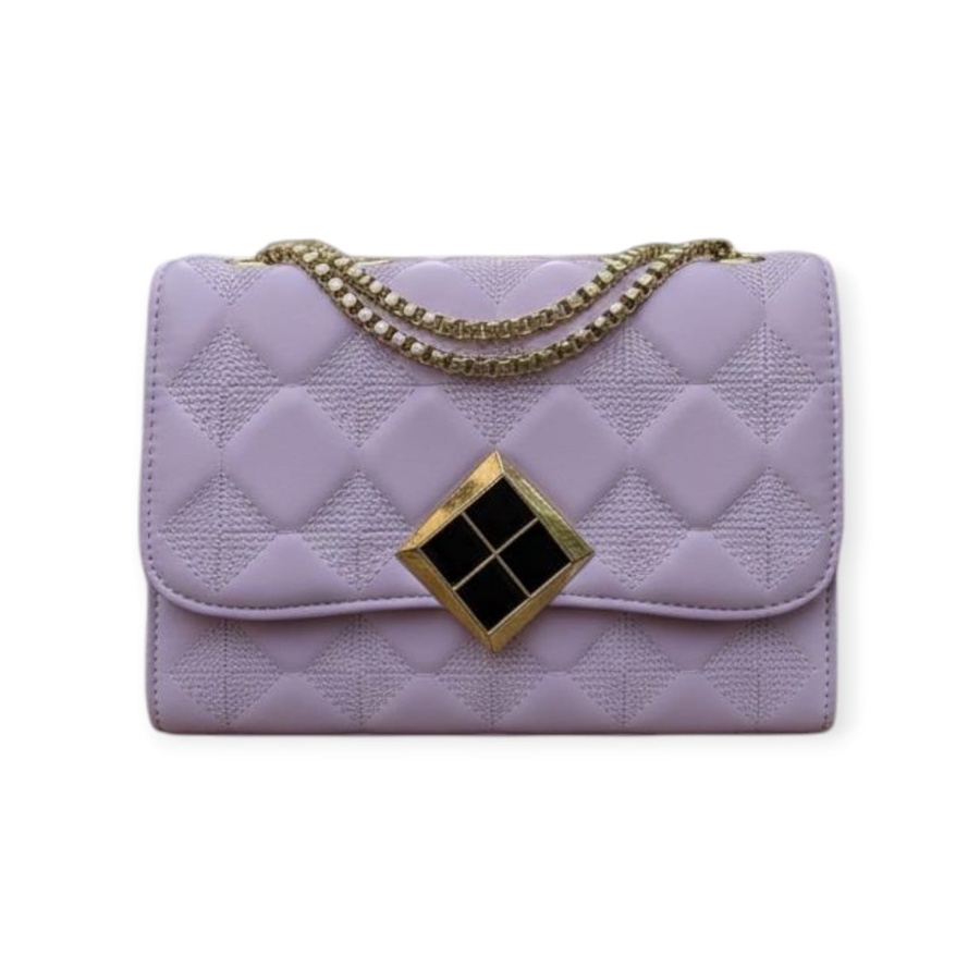 شنطة كروس حريمي جلد مبطنة بتصميم مربعات وسلسلة كتف ذهبية مع قفل ديكوري أمامي مميز، حجم عملي للموبايل والمحفظة، مثالية للسهرات والخروجات البناتي