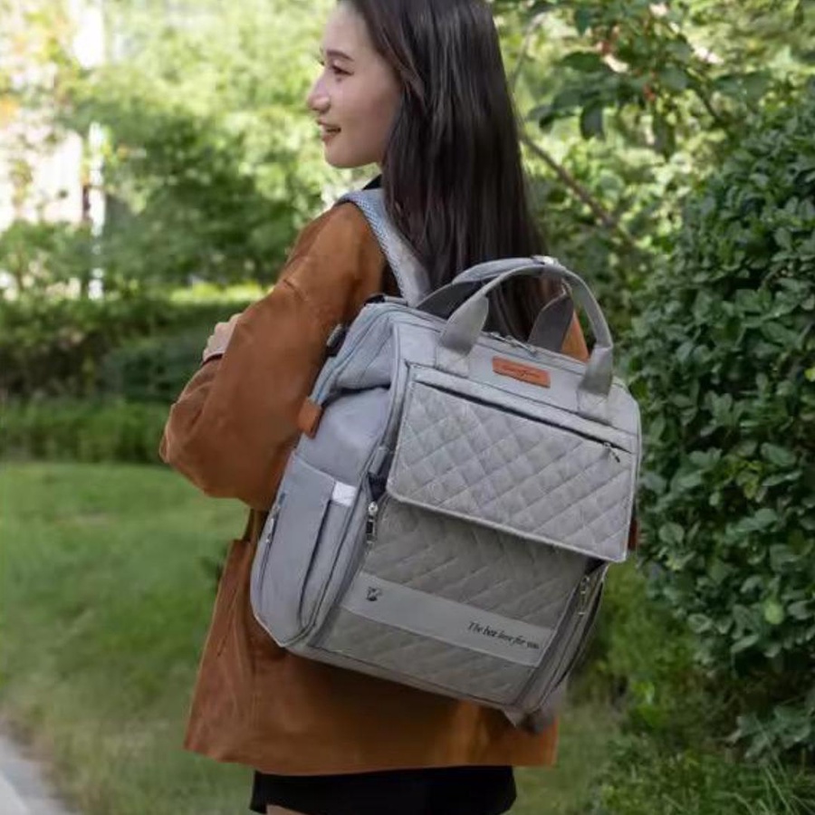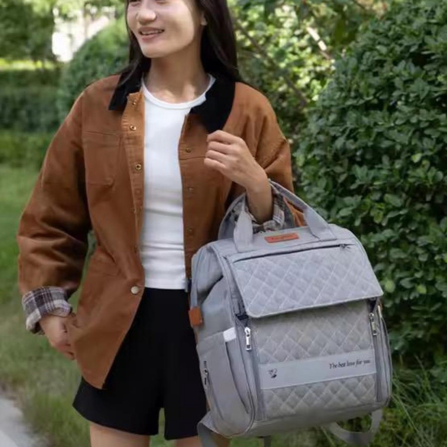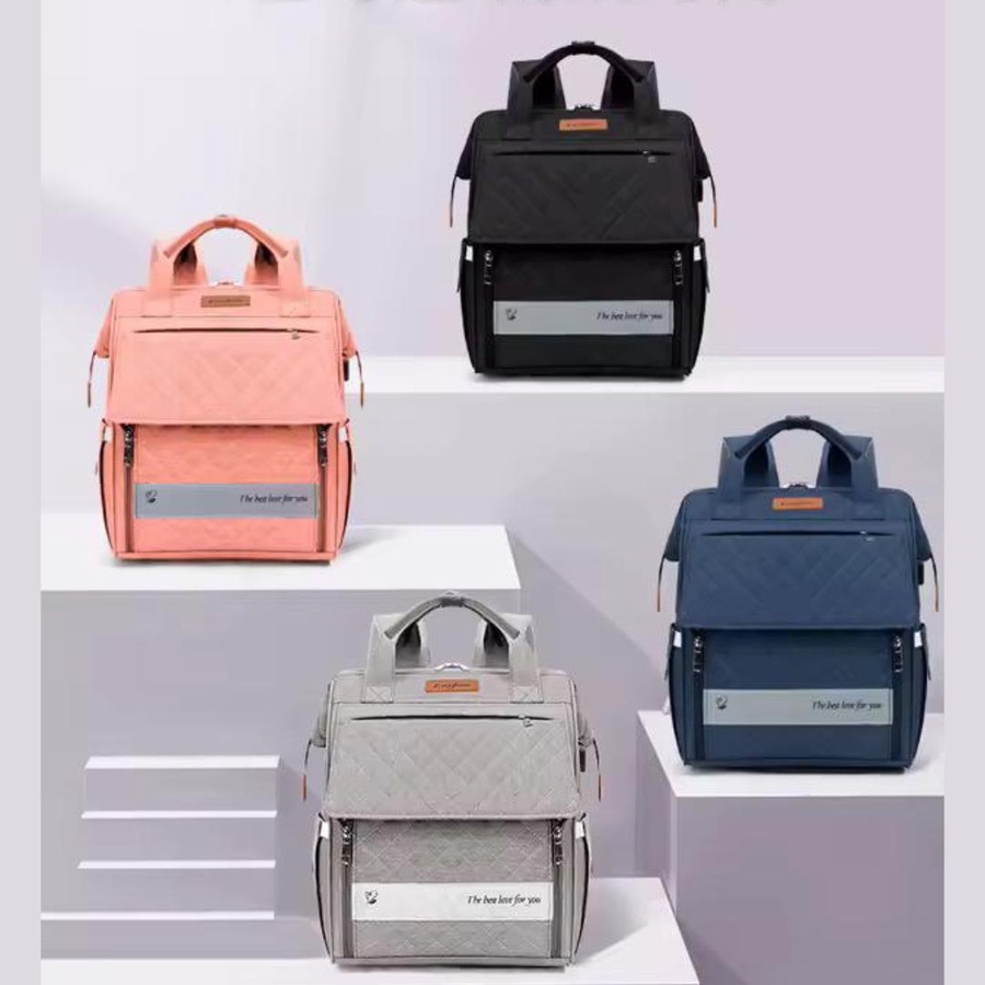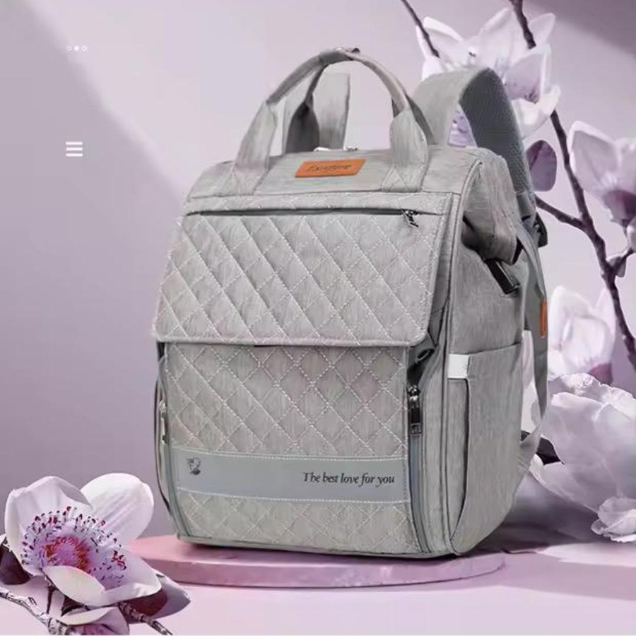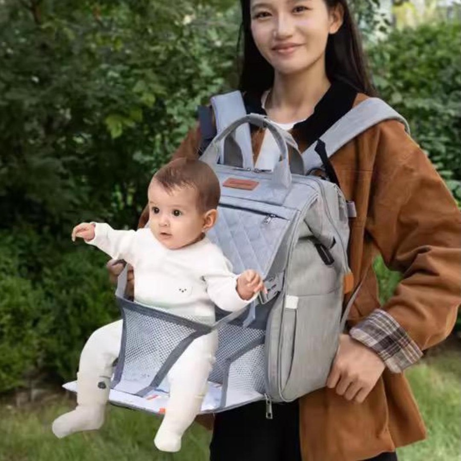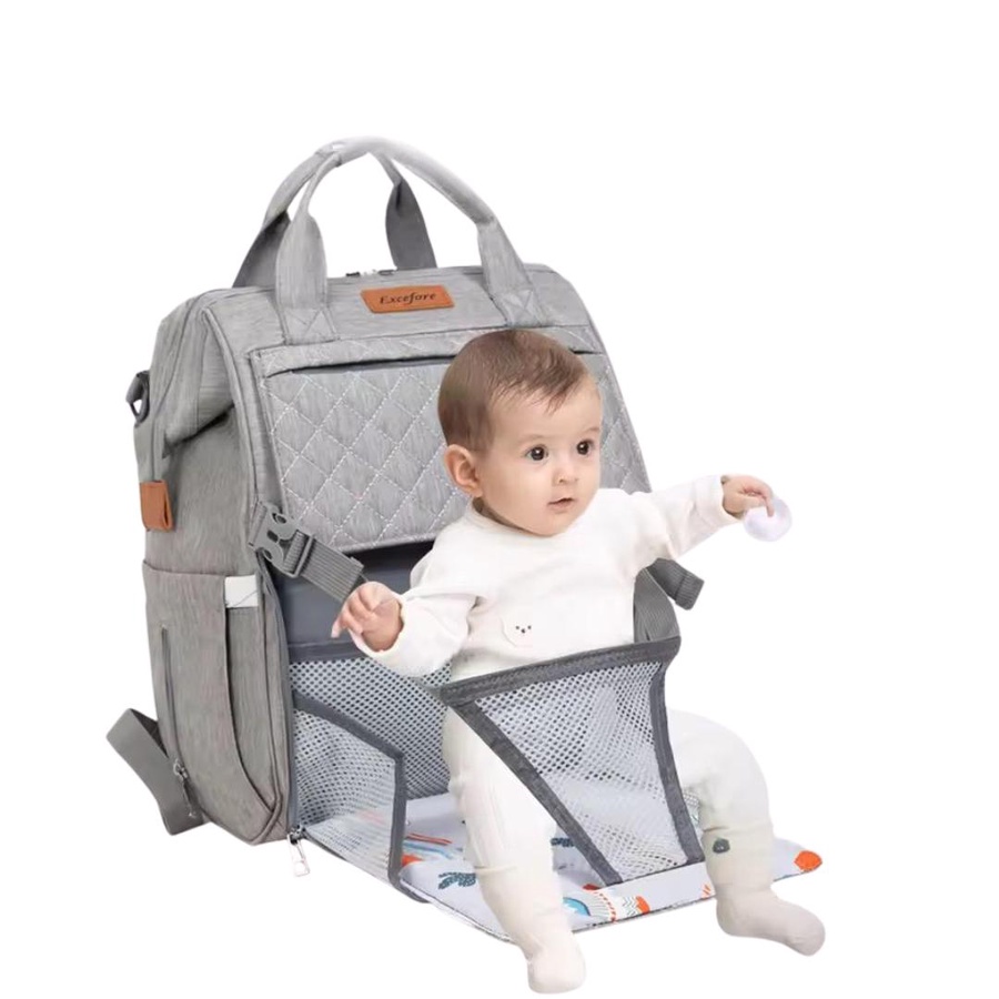 شنطة مستلزمات البيبى Excefore بخامة تقيلة ومتينة، متعددة الاستخدامات، مزودة بسرير طفل محمول، جيوب تنظيمية، ومناسبة للسفر والمشاوير اليومية.
