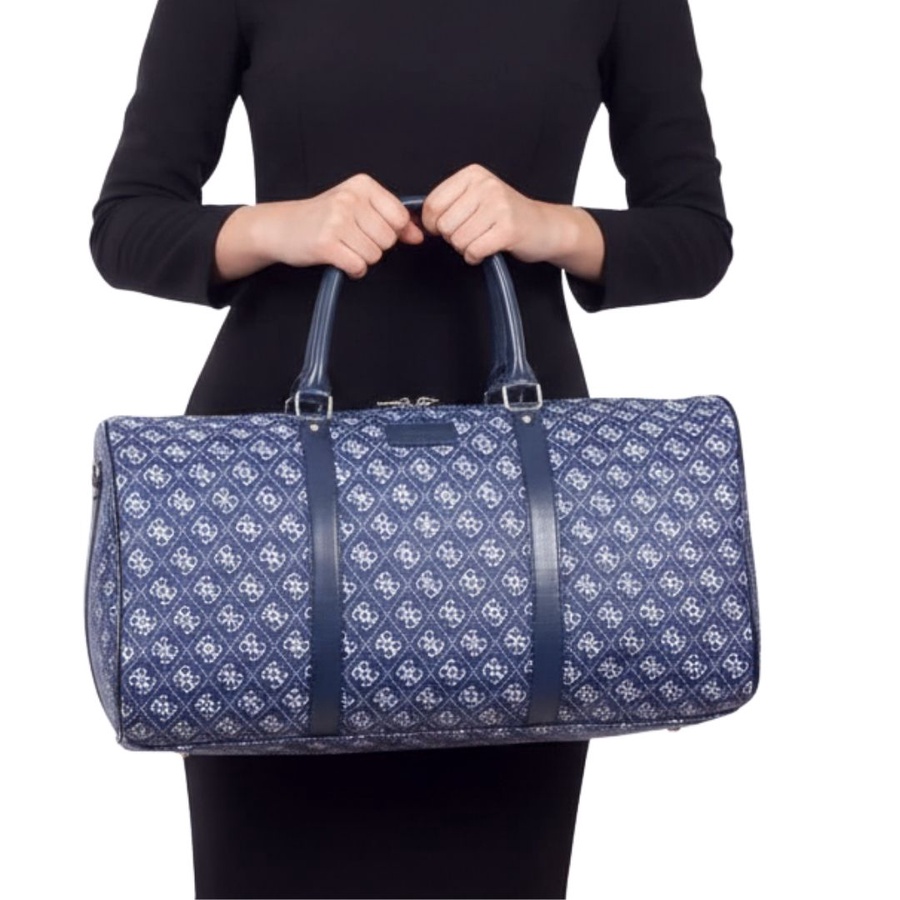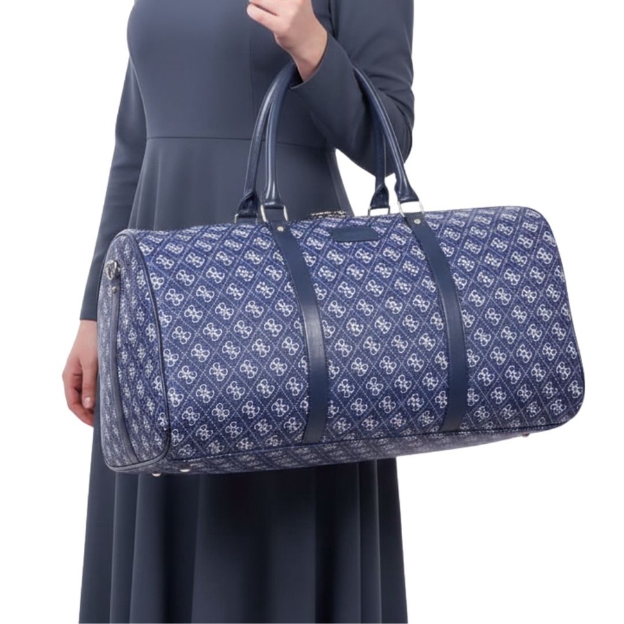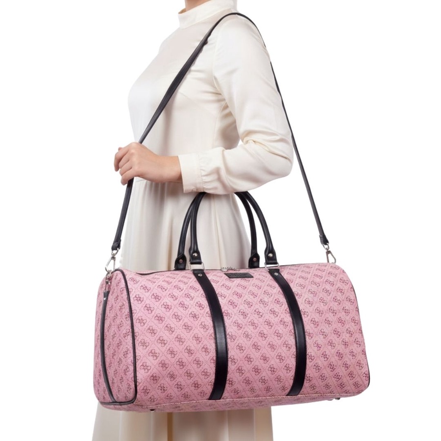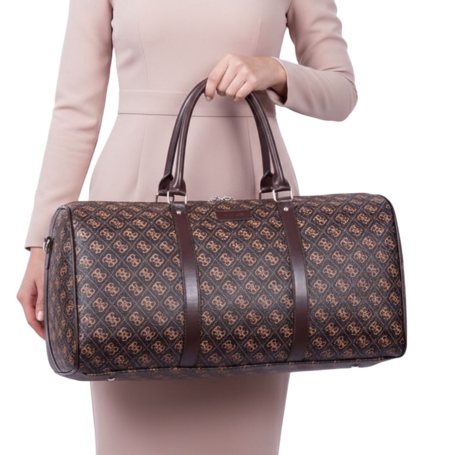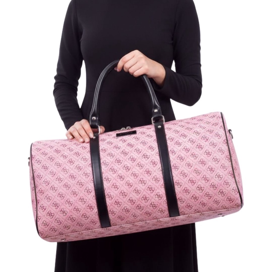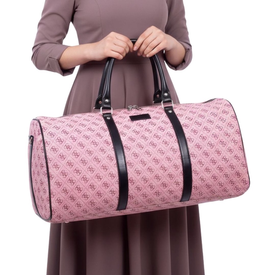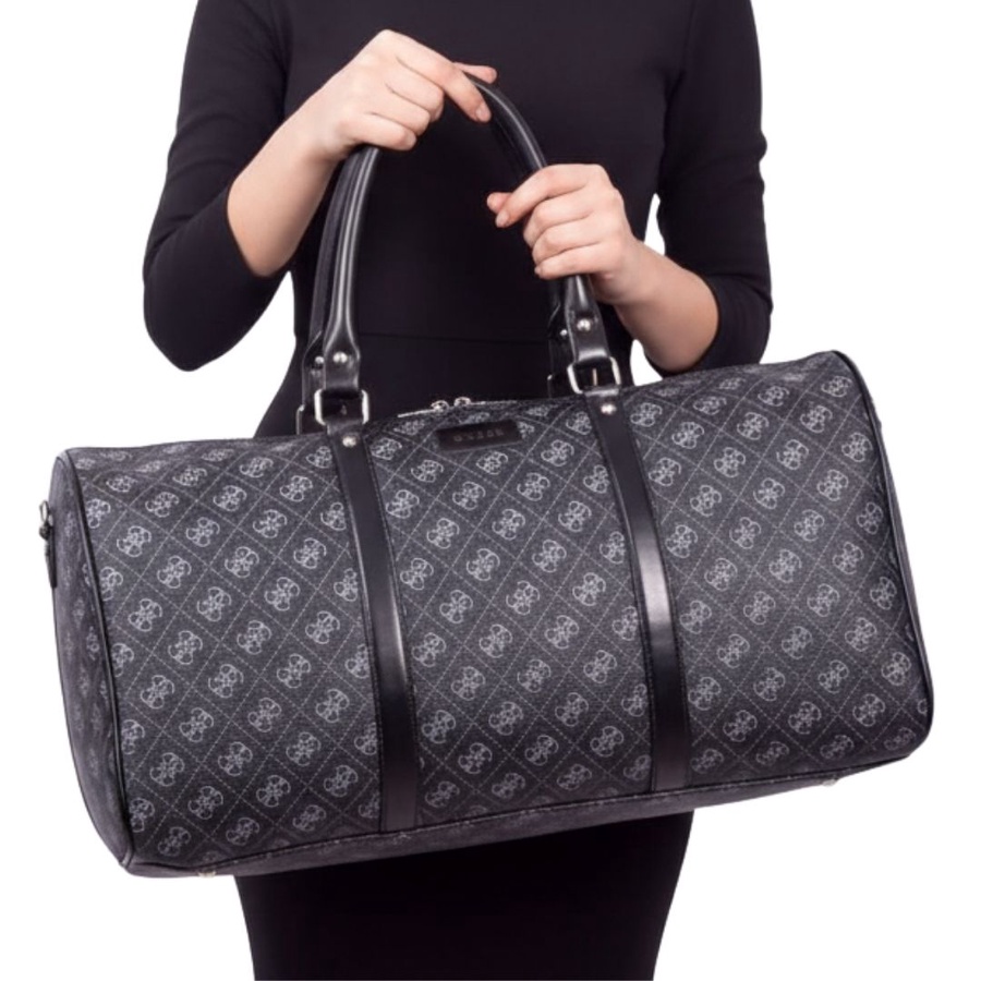 شنطة سفر كبيرة بتصميم أنيق مستوحى من تصميم Guess، مناسبة لكل اللي بيحبوا الشكل الفاخر مع الاستخدام العملي. الشنطة بتصميم اسطواني يوفر مساحة داخلية واسعة تقدر تشيل فيها احتياجات السفر الخفيف أو النادي بسهولة، مع سوستة إغلاق علوية علشان تحافظ على المحتويات بشكل آمن، ومقابض علوية قوية لراحة أكبر أثناء الحمل.