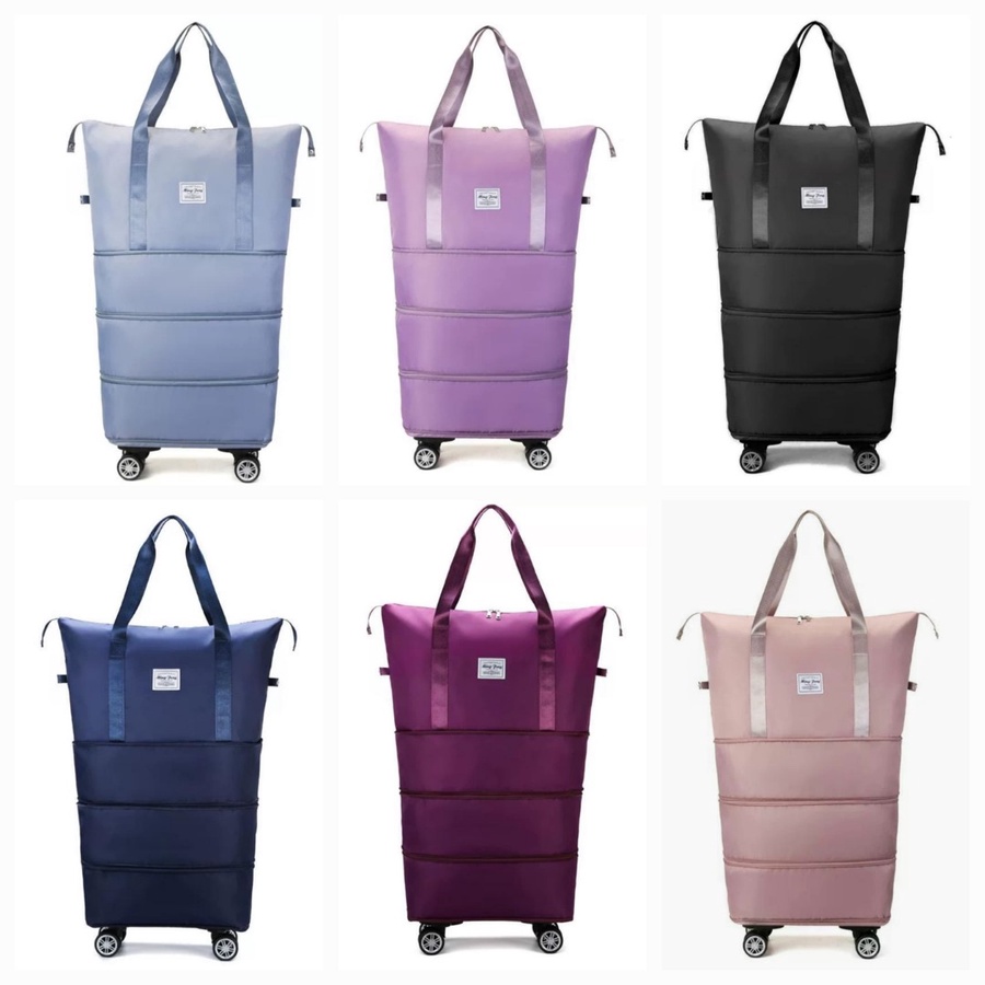 شنطة سفر هاند باج سادة بعجل قابلة للتوسيع لثلاث مستويات، متوفرة بألوان متعددة، بسعة كبيرة لرحلات الويك إند والمصايف، خفيفة وتتجر على العجل أو تتشال من اليد،
