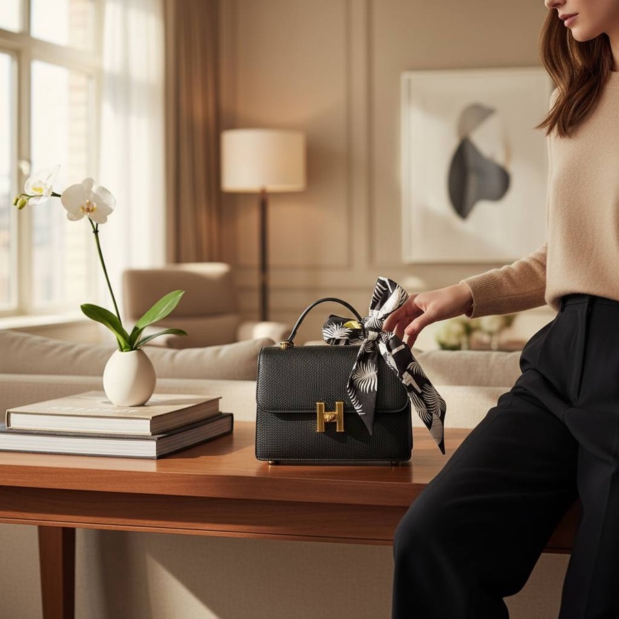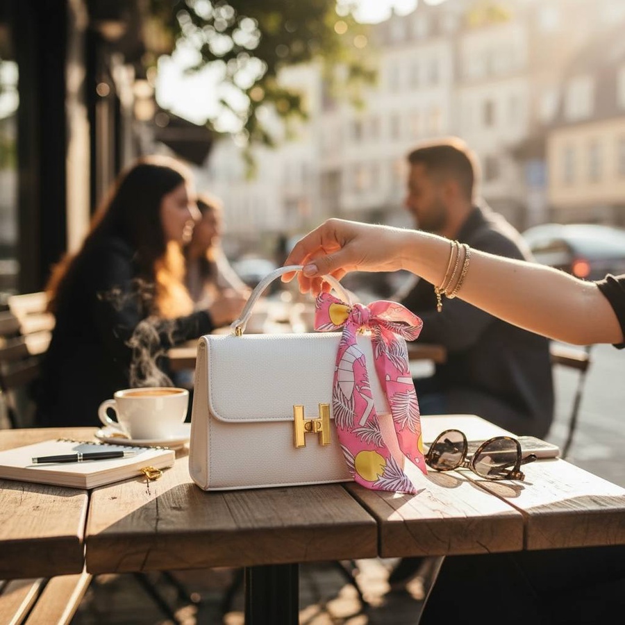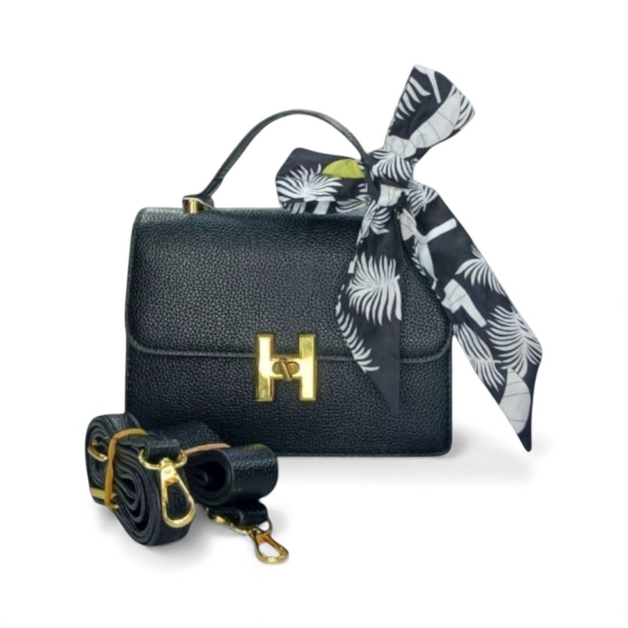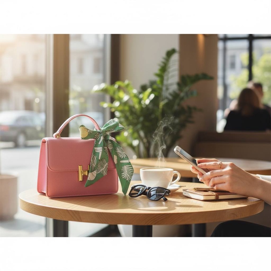الوشاح الديكوري المربوط من فوق يدي للشنطة لمسة مختلفة تلفت النظر وتخليها تبان كأنها قطعة اكسسوار مكملة للبس مش مجرد شنطة بس، وكمان تقدر تشيليه أو تغيري طريقة ربطه بسهولة. مساحة الشنطة مناسبة للموبايل، المحفظة، المفاتيح وكام قطعة ميكب أساسية، وقفلها الأمامي يحافظ على حاجتك بأمان طول اليوم، فهتكون اختيار ممتاز لأي بنت عايزة شنطة صغيرة شيك تعيش معاها وتليق على كذا استايل
