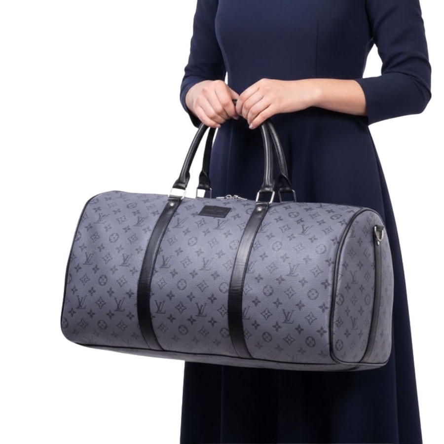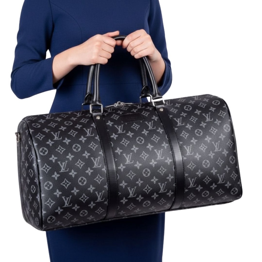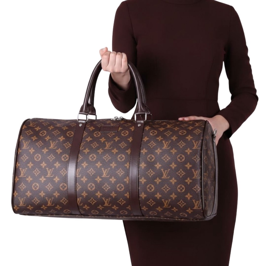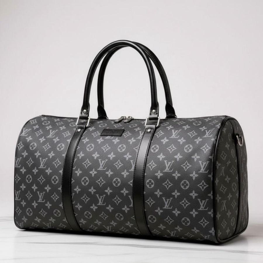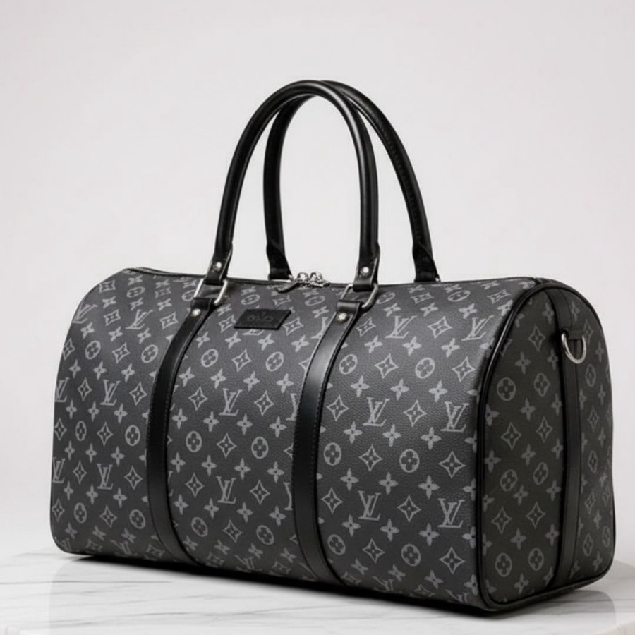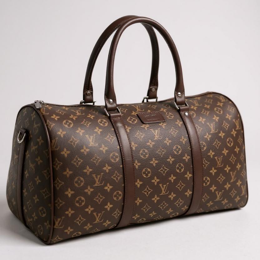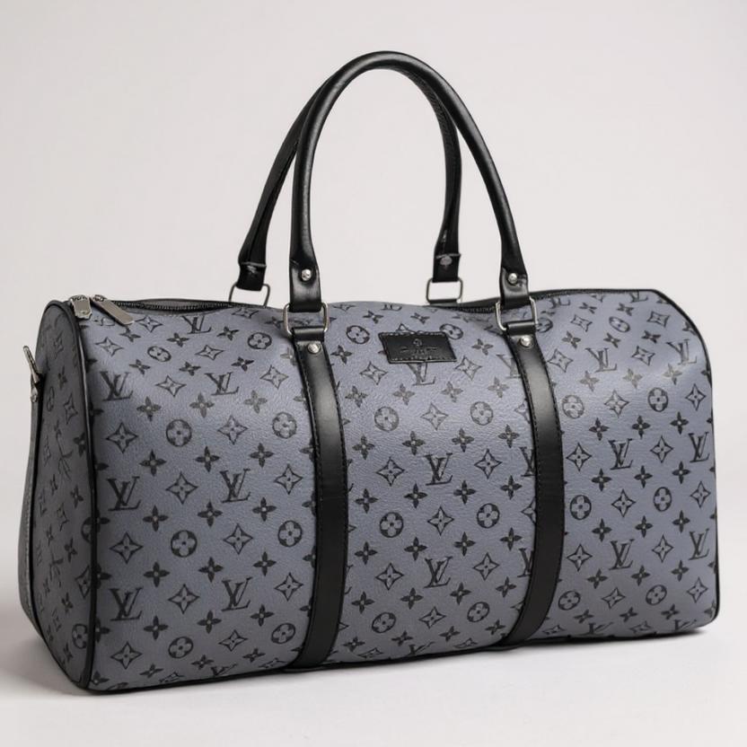 شنطة سفر كبيرة بتصميم أنيق مستوحى من تصميم Louis Vuitton، مناسبة لكل اللي بيحبوا الشكل الفاخر مع الاستخدام العملي. الشنطة بتصميم اسطواني يوفر مساحة داخلية واسعة تقدر تشيل فيها احتياجات السفر الخفيف أو النادي بسهولة، مع سوستة إغلاق علوية علشان تحافظ على المحتويات بشكل آمن، ومقابض علوية قوية لراحة أكبر أثناء الحمل.