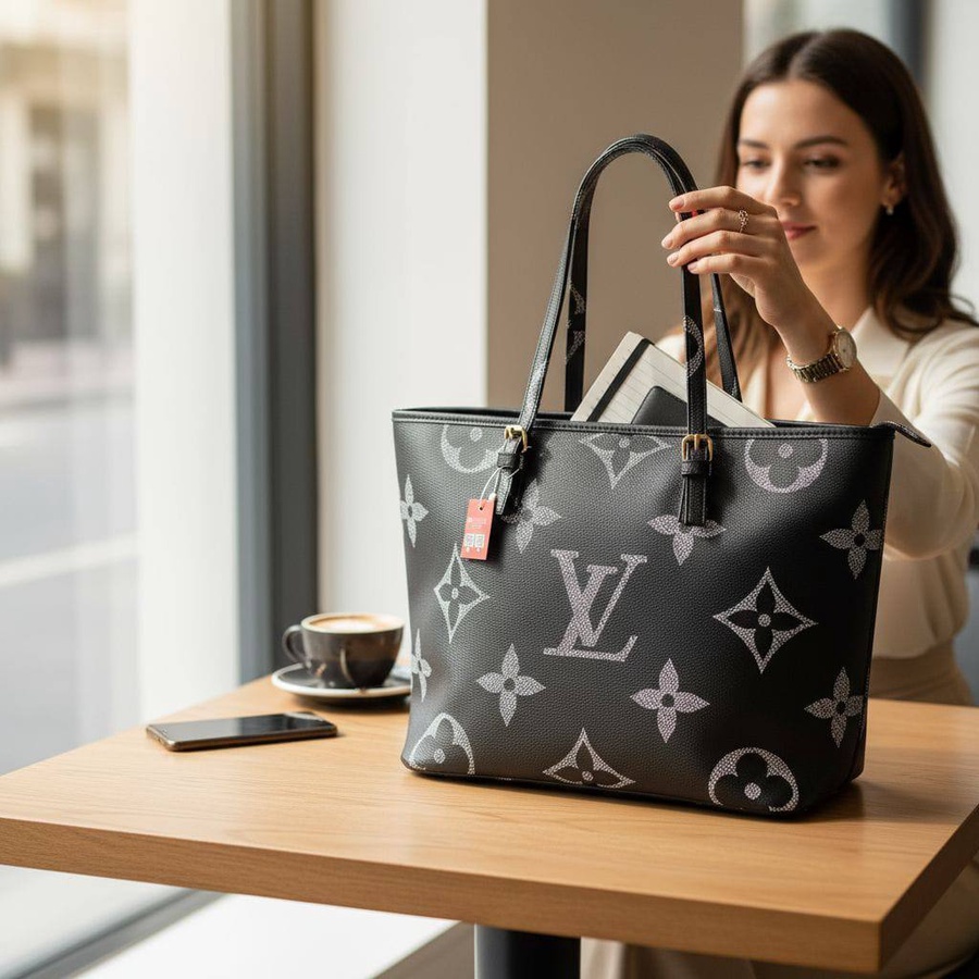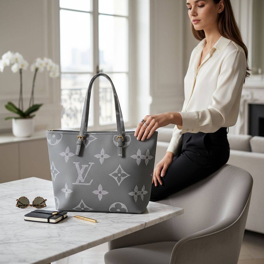 شنطة Louis Vuitton مناسبة للبنات والسيدات اللي بتحب الشنط البراند وتحب كمان تكون عملية وتشيل معاها كل حاجتها طول اليوم، مساحتها واسعة تنفع للمحفظة، الموبايل، نوت بوك، بوك منظم، مستحضرات أساسية وكذا قطعة زيادة من غير ما تحسي إن الشنطة مليانة على الآخر. تصميمها البسيط بطبعة لوجو LV الكلاسيك يخليها تمشي على لبس الشغل، الجامعة أو الخروجات الكاجوال والشيك.