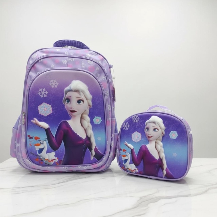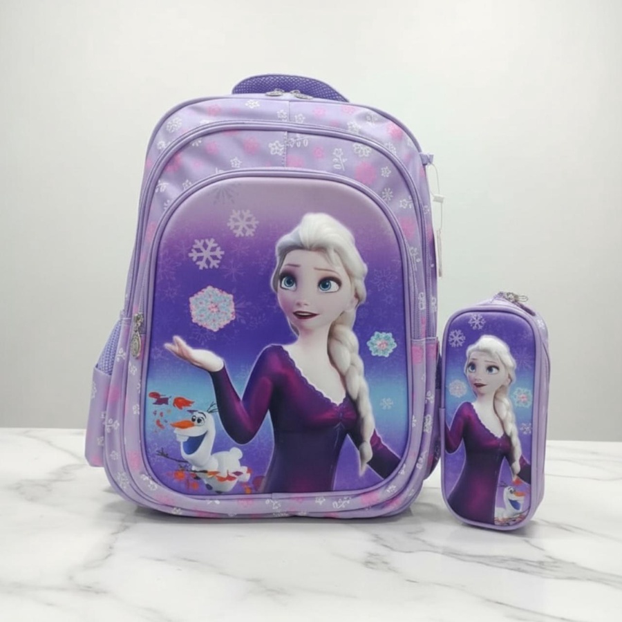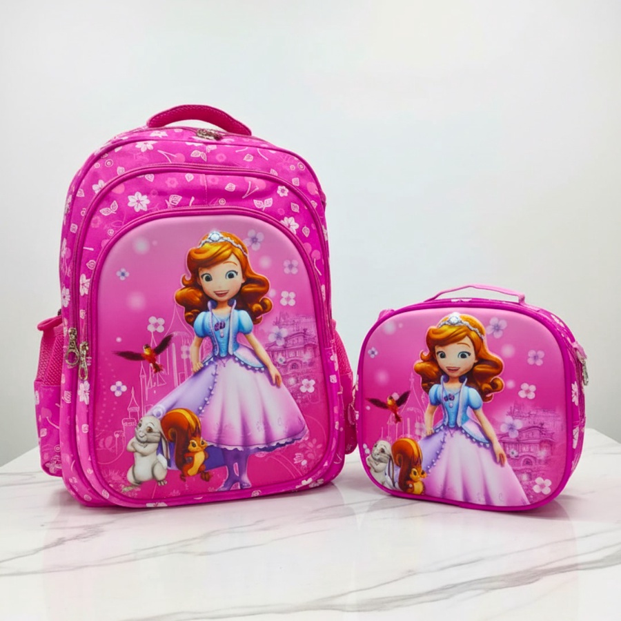 - شنطة الظهر: مساحتها واسعة (حوالي 18 بوصة) بتشيل كل الكتب والكشاكيل، بظهر وأكتاف مبطنة عشان راحة طفلك، وخامة قوية تستحمل بهدلة المدرسة.
