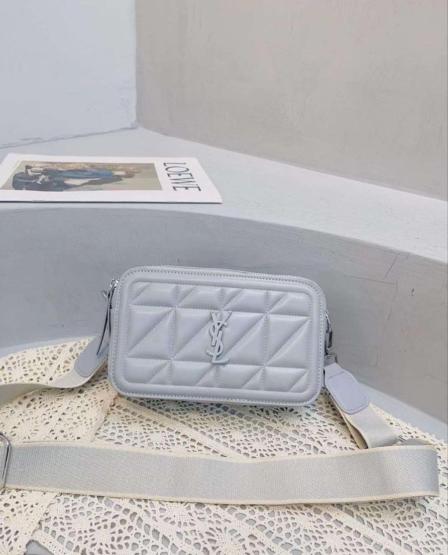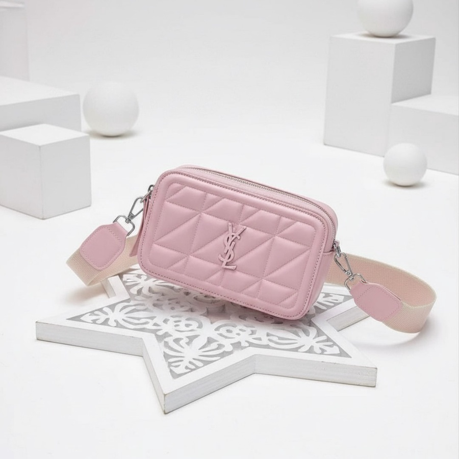 شنطة الكروس الحريمي ستايل YSL تعتبر قطعة شيك وبسيطة في نفس الوقت، تصميمها المستطيل المبطّن يدي شكل مرتب يمشي مع لبس كاجوال أو خروج بالليل، واللوجو في النص يديها لمسة براند شيك. الحزام العريض القابل للتعديل يخليها مريحة على الكتف حتى لو لابساها طول اليوم، وتقدري تزودي أو تقللي الطول عشان تناسب استايل لبسك.