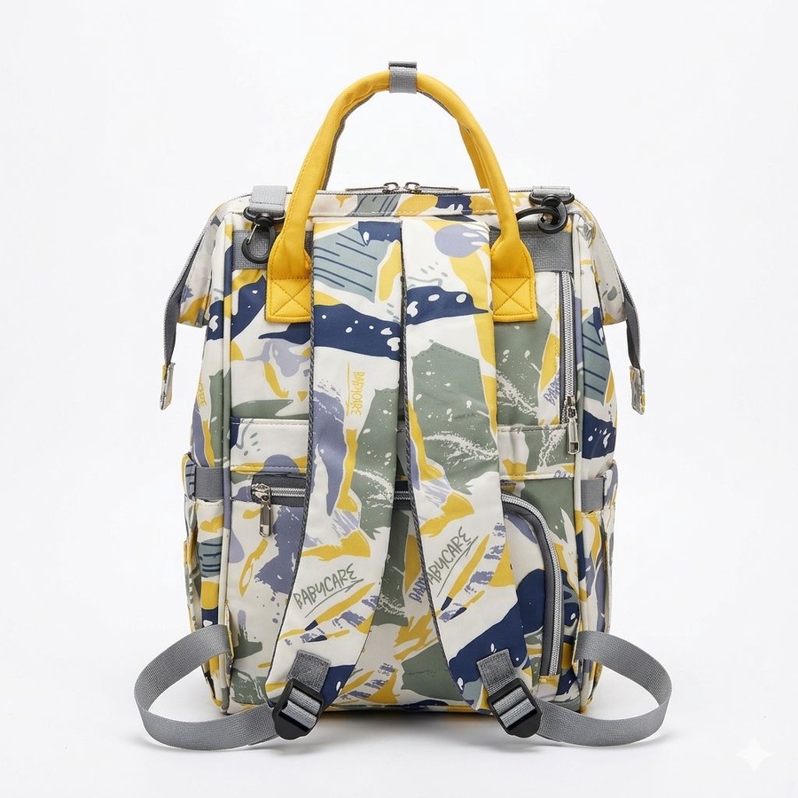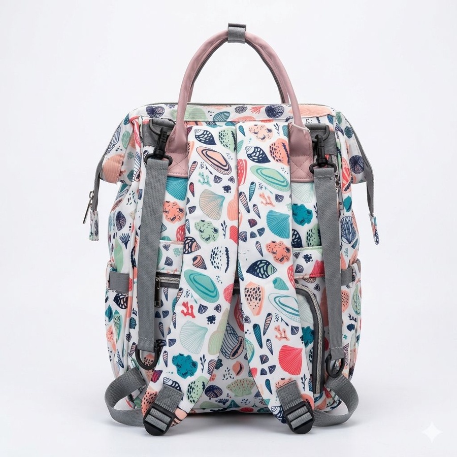 * تنظيم داخلي فائق: مساحة داخلية ضخمة مع جيوب جانبية وسوست خلفية، مصممة لاستيعاب الحفاضات، الغيارات، المناديل المبللة، وأغراضك الشخصية بكل ترتيب.