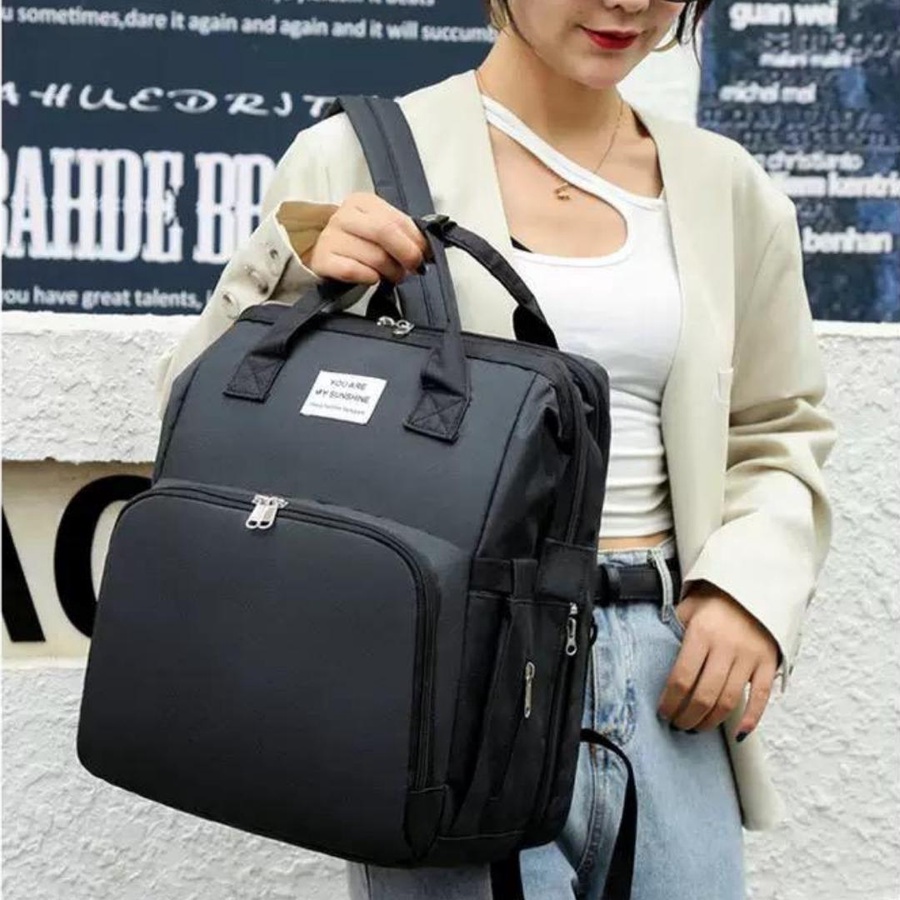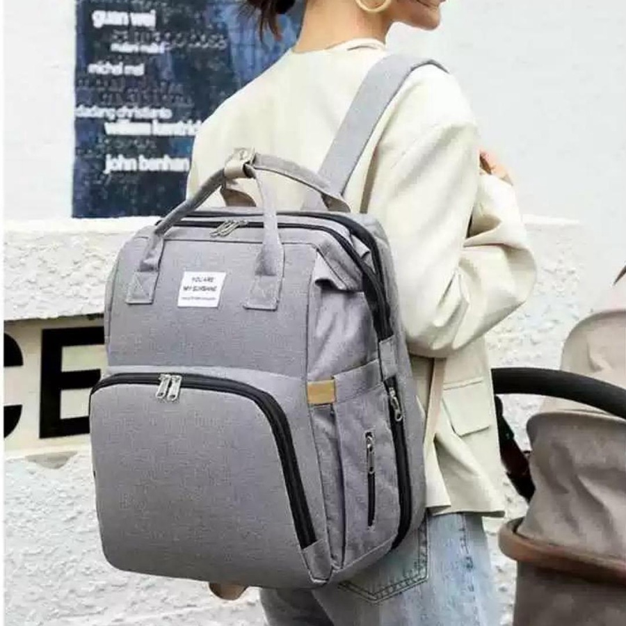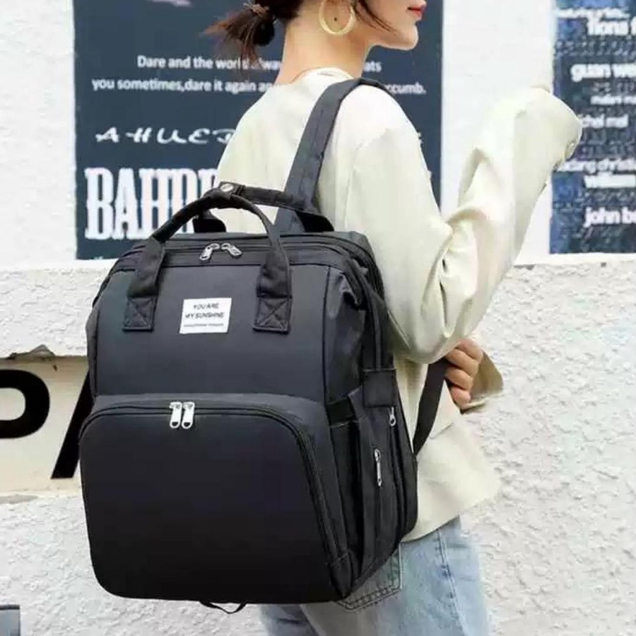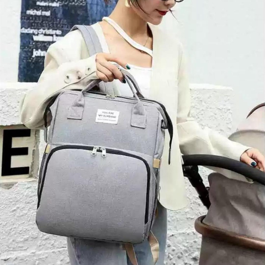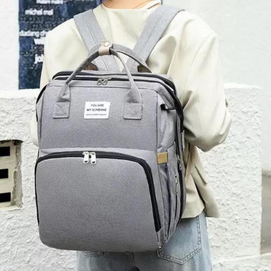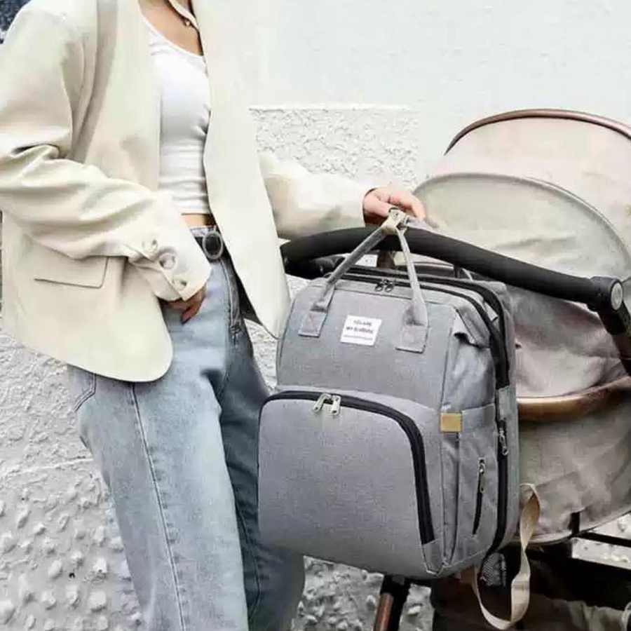 للخروج اليومي والسفر. تصميمها معمول مخصوص عشان يوفّر تنظيم ذكي + سعة كبيرة + راحة في الحمل، وكمان فيها ميزة مهمة جدًا وهي فرش سرير/تغيير قابل للطي يساعدك وقت ما تكوني برّه البيت.