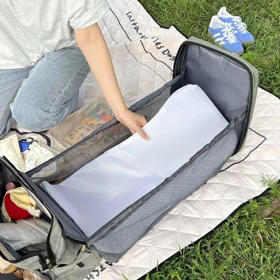 شنطة مامى متعددة الاستخدامات مع امكانية فردها سرير – جيوب متعددة - تنظيم ذكى وحمل مريح للأمهات