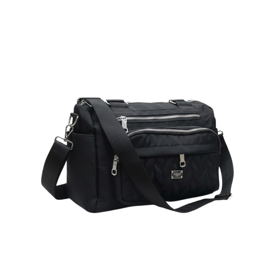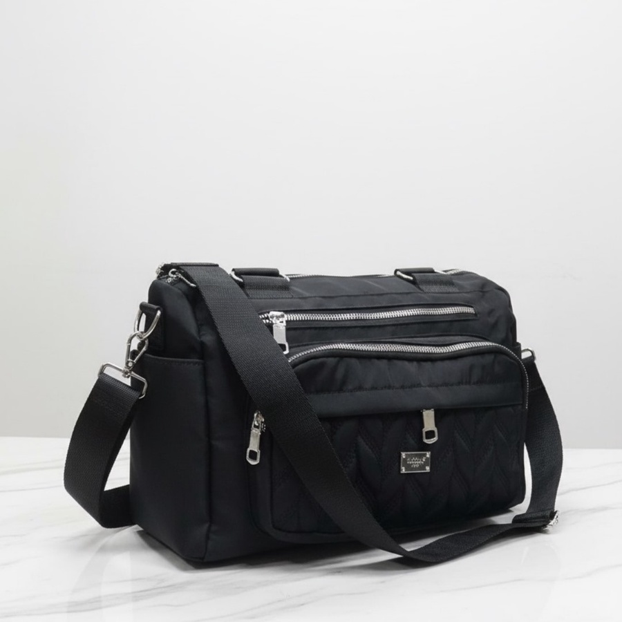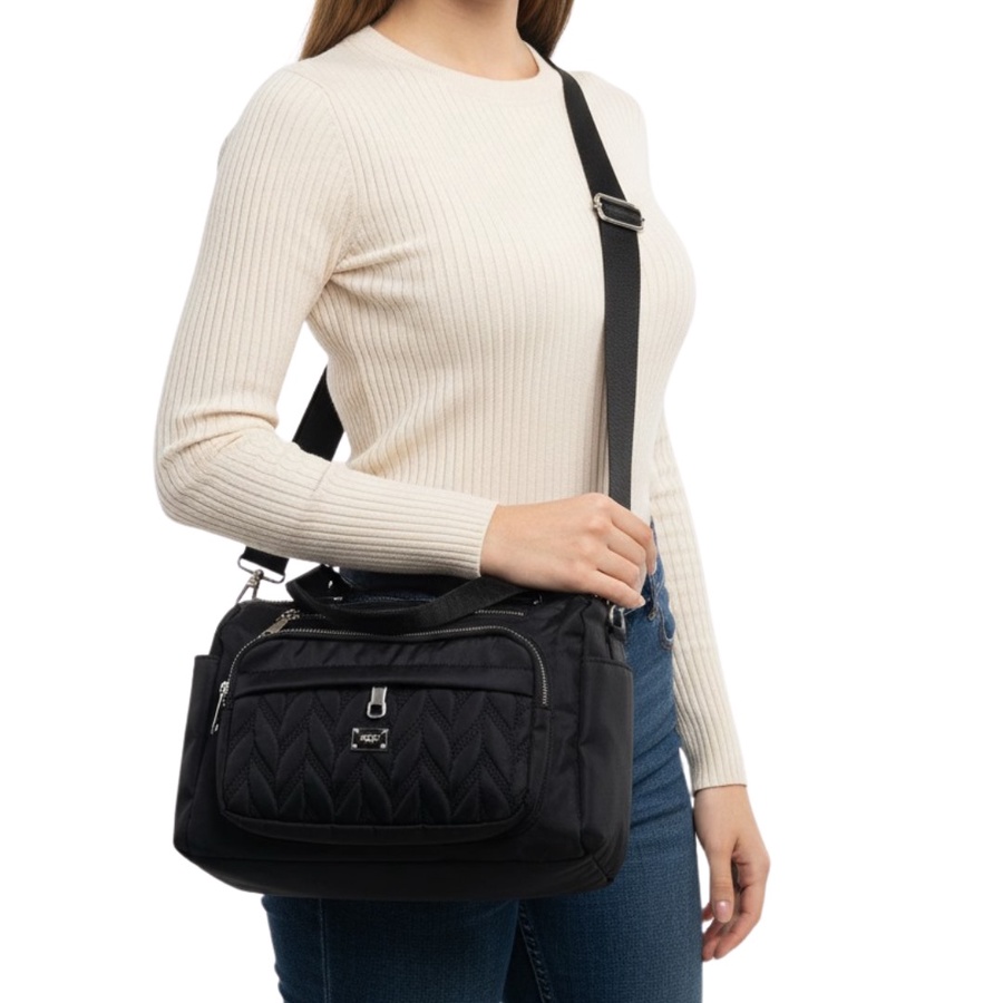 شنطة مناسبة للبنات اللي بتحب الشنط العملية اللي شكلها شيك وكمان تشيل كل اللي تحتاجه لمشوار الجيم أو ليلة سفر خفيفة، مساحتها تكفي طقم تغيير، فوطة صغيرة، زجاجة مية، محفظة وموبايل مع شوية حاجات أساسية تانية. الواجهة المبطنة بنقشة مربعات ناعمة تديها شكل أنثوي بسيط يمشي مع لبس الجيم أو لبس كاجوال للويك إند.