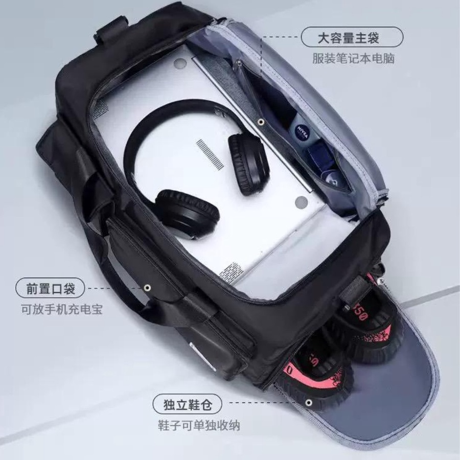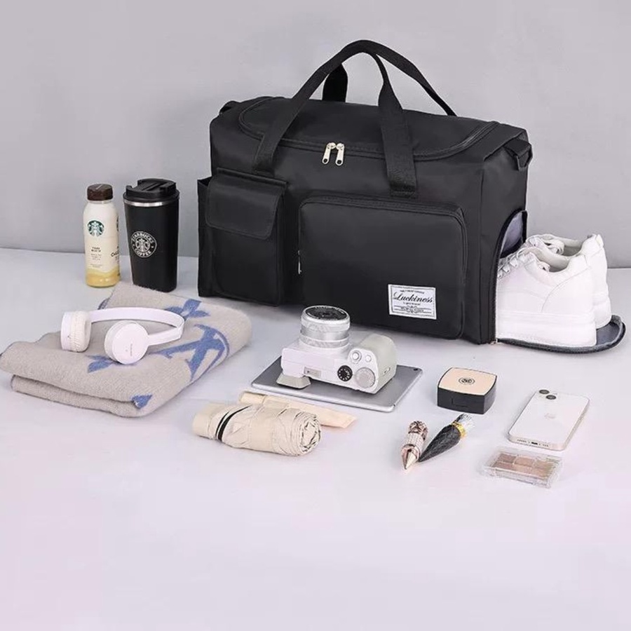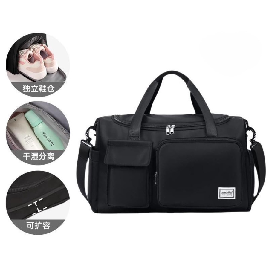 شنطة جيم وسفر سوداء - بجيب شوز وجيوب متعددة