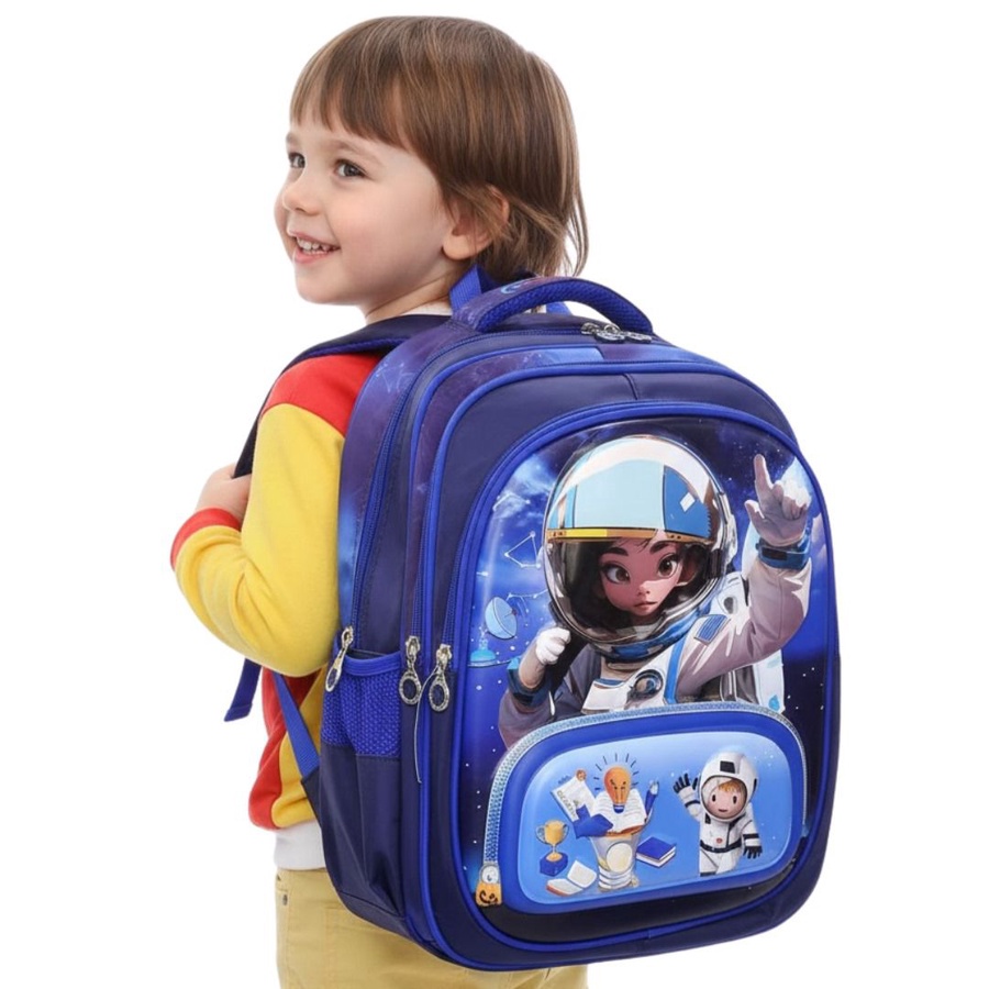 الظهر والكتافات مبطنين كويس جداً (Padded Straps) عشان ميتعبوش ظهر طفلك حتى لو الشنطة تقيلة، والخامة الخارجية قوية وضد المية (Waterproof) عشان تحمي الكتب من أي بهدلة. فيها جيوب وسوست كتير عشان ابنك أو بنتك يعرفوا ينظموا كتبهم وأدواتهم بسهولة. متوفرة بألوان ورسومات جذابة تناسب الولاد والبنات