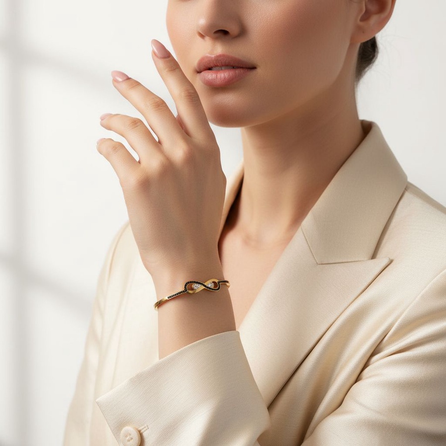 بريسلت ستانلس ستيل دهبى فصوص بتصميم شكل انفنتى