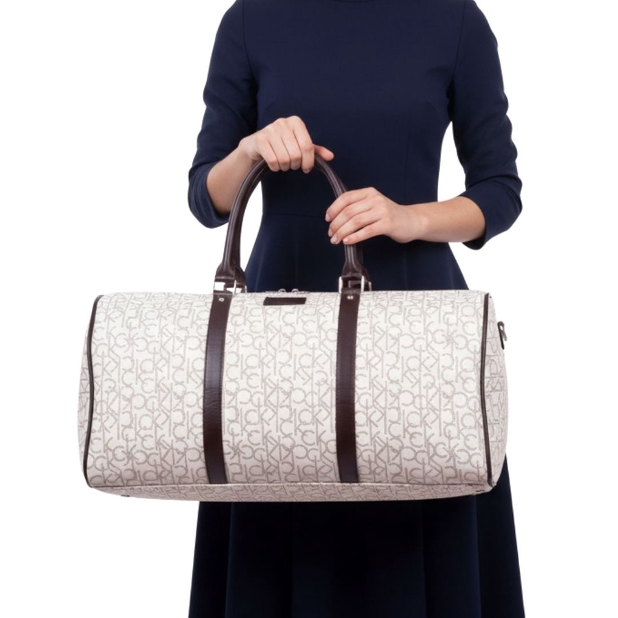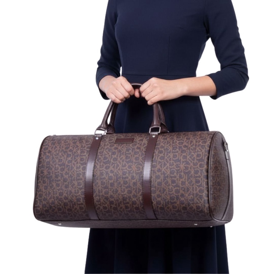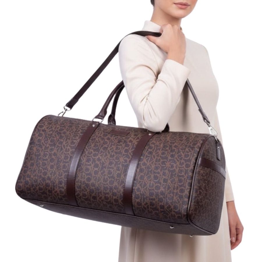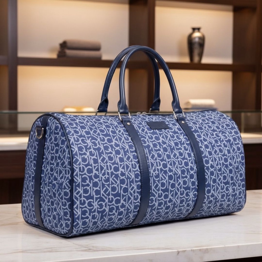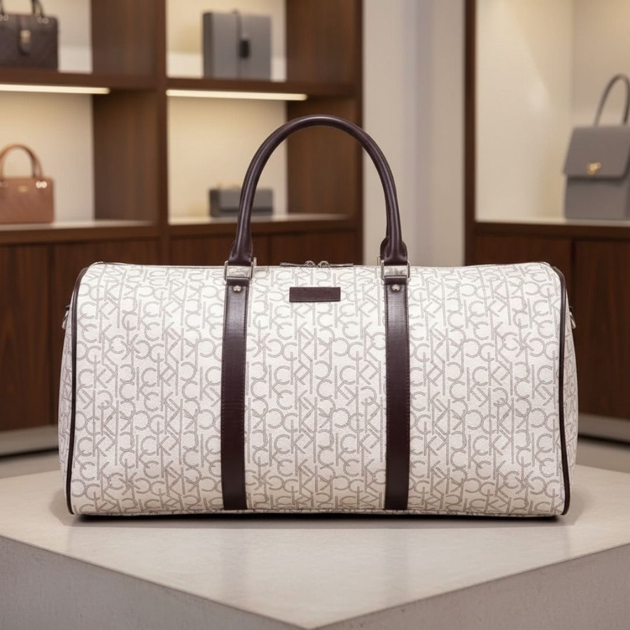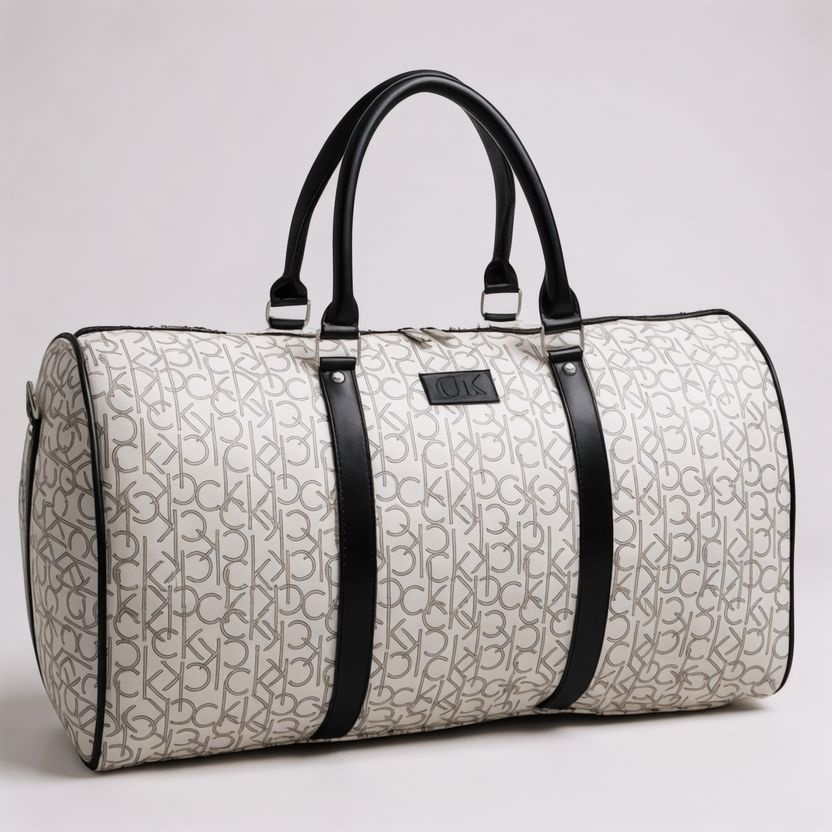 شنطة سفر كبيرة بتصميم أنيق مستوحى من تصميم كيلفن كلاين، مناسبة لكل اللي بيحبوا الشكل الفاخر مع الاستخدام العملي. الشنطة بتصميم اسطواني يوفر مساحة داخلية واسعة تقدر تشيل فيها احتياجات السفر الخفيف أو النادي بسهولة، مع سوستة إغلاق علوية علشان تحافظ على المحتويات بشكل آمن، ومقابض علوية قوية لراحة أكبر أثناء الحمل.