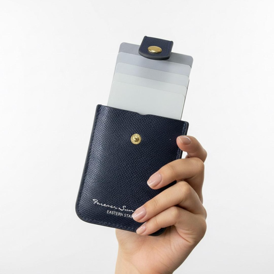 محفظة بطاقات مصنوعة من الجلد مع كبس مغناطيسي مثالية لتنظيم البطاقات أو الكروت في الشنطة أثناء السفر أو الشغل.