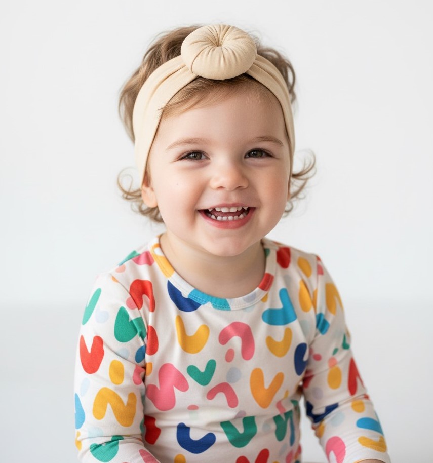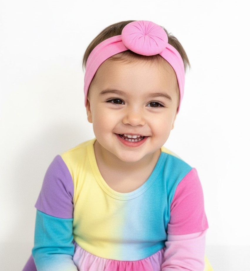 سورتيت رأس قطنية ناعمة للأطفال بتصميم عقدة جذابة، مناسبة للرضّع والبنات الصغيرات. خامة مريحة ولطيفة على البشرة وتضيف لمسة أنيقة لأي إطلالة يومية أو مناسبة خاصة.