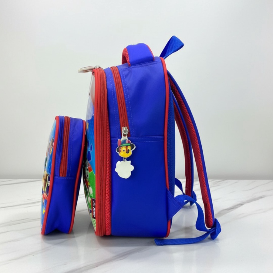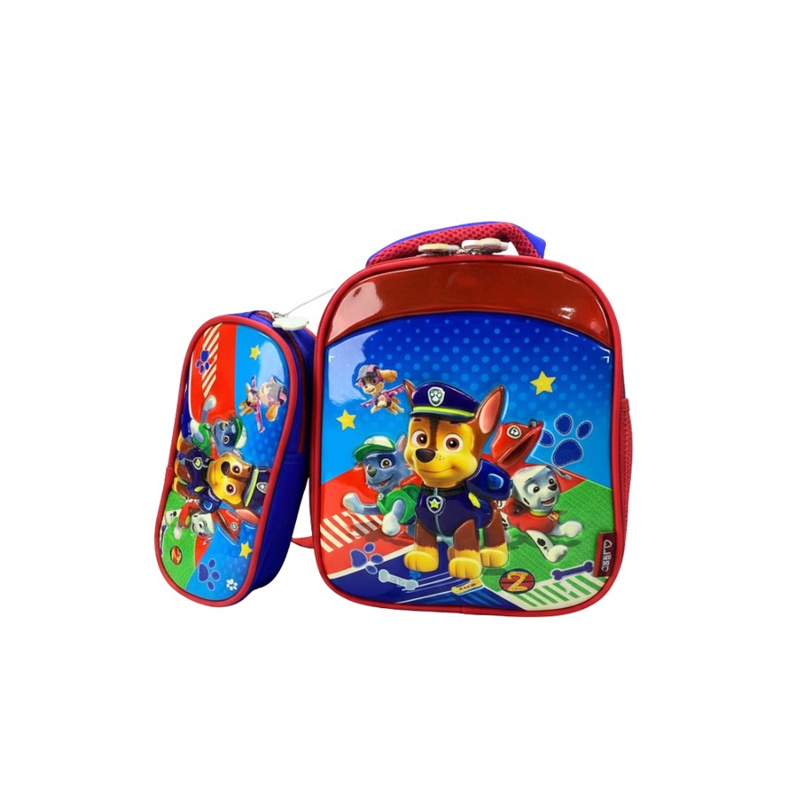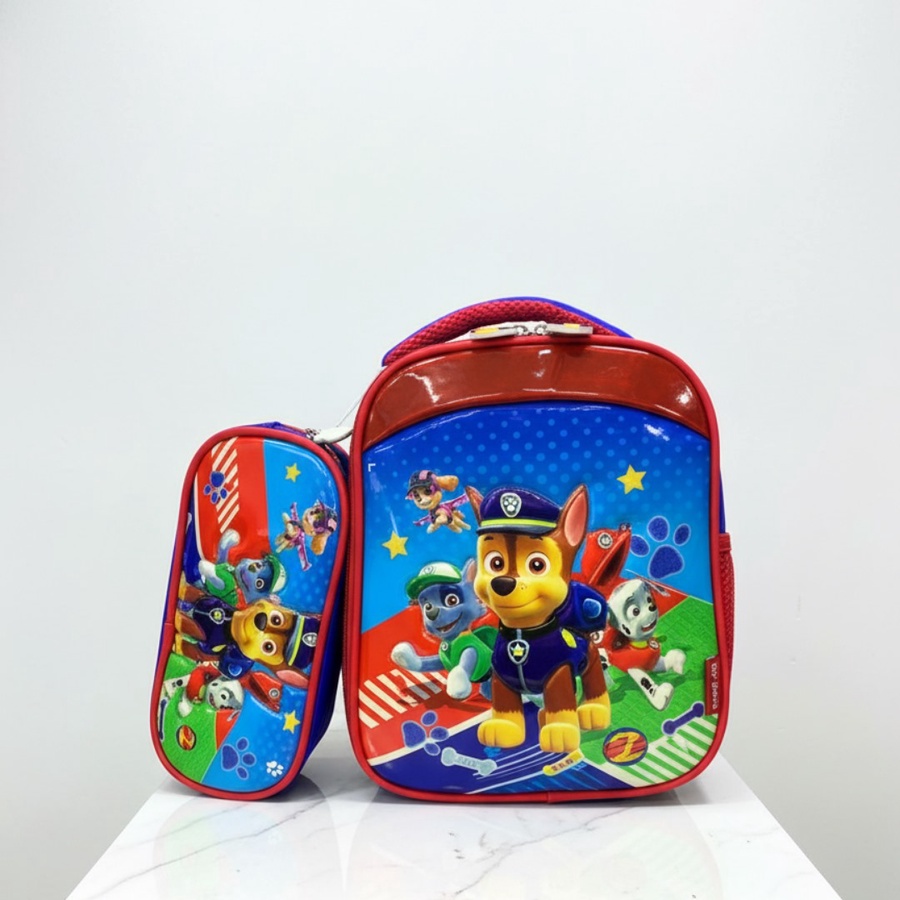 اللانش باج ده هيحمس أي طفل يروح الحضانة أو المدرسة وهو مبسوط علشان عليه رسومات كلاب كرتونية محببة للأطفال. جاي معاه مقلمة بنفس التصميم عشان الطفل يحس إن معاه طقم كامل منظم يشيل الأقلام والألوان مع علبة الأكل والزجاجة في نفس الوقت.