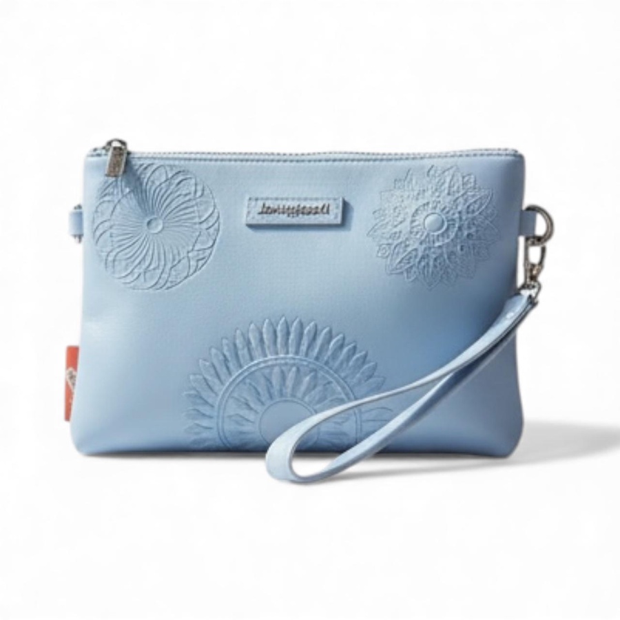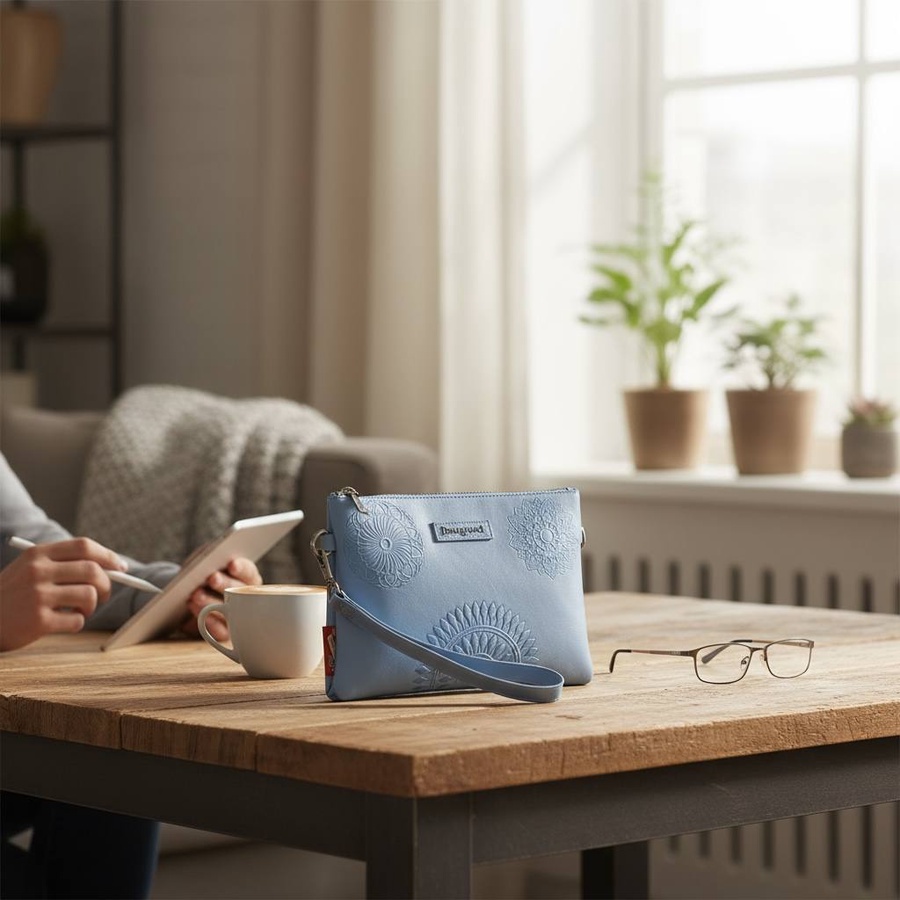 الكلاتش تعتبر قطعة بسيطة وشيك في نفس الوقت، حجمها مظبوط يشيل الموبايل، المحفظة، المفاتيح وكام قطعة ميكب من غير ما تحس إنها كبيرة أو مزعجة في الإيد. نقشة الرسومات البارزة على الوش قدام تدي شكل مميز وناعم يخلي الشنطة تبان راقية على أي لبس سواء كاجوال أو خروج بالليل.