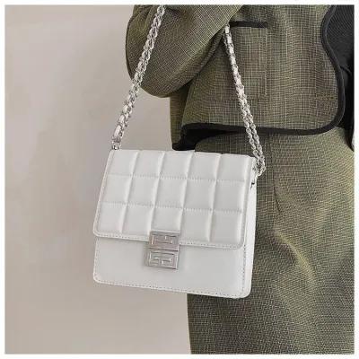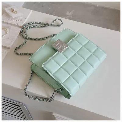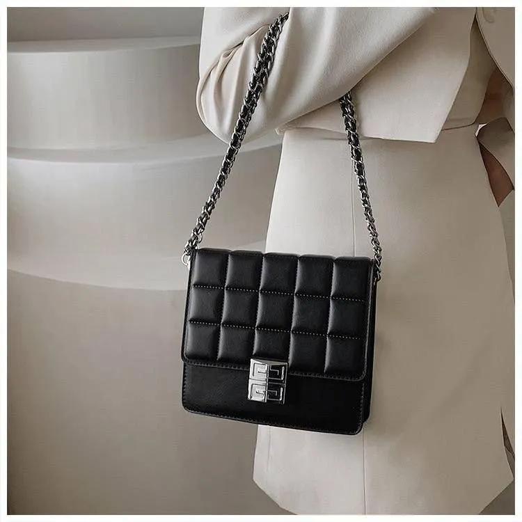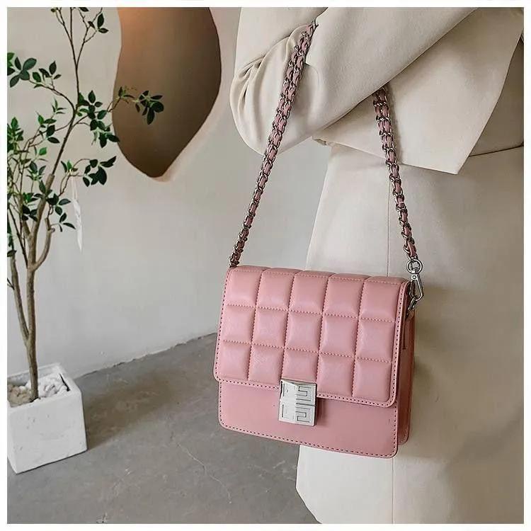 شنطة كروس حريمى مبطنة تصميم مربعات بسلسلة معدنية وقفل أمامي معدني أنيق، حجم عملي للموبايل والمحفظة، مثالية للسهرات والخروجات البناتي