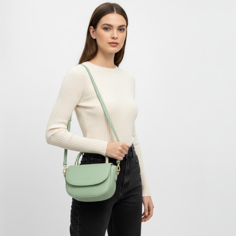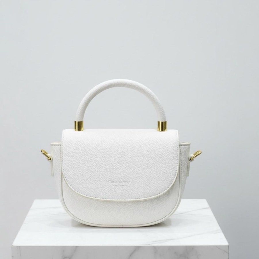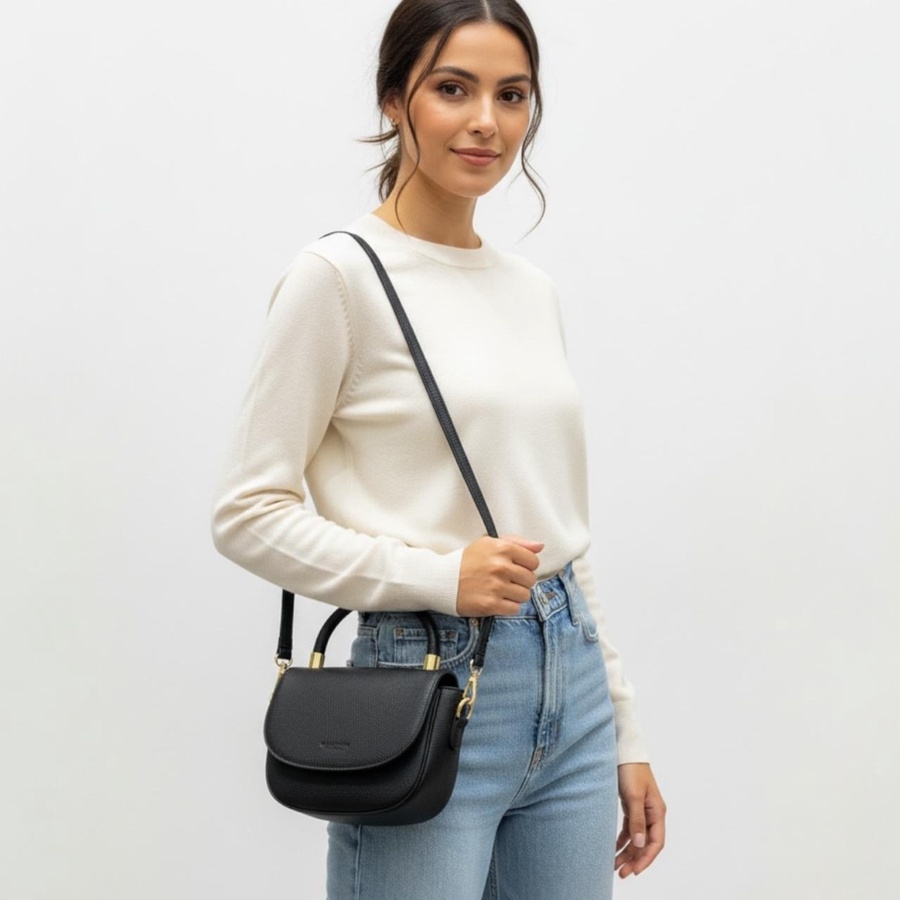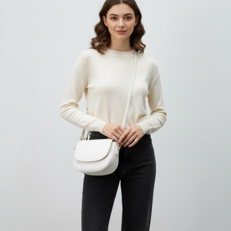 شنطة الكروس دي ستايل بسيط وشيك، حجمها الصغير عملي يشيل الموبايل، المحفظة الصغيرة، المفاتيح وكام حاجة خفيفة من غير ما تحسي إنها تقيلة. مقبض اليد الدائري من فوق يدي الشنطة شكل أنثوي راقي ينفع مع فستان، جيب أو بنطلون جينز في الخروجات اليومية.