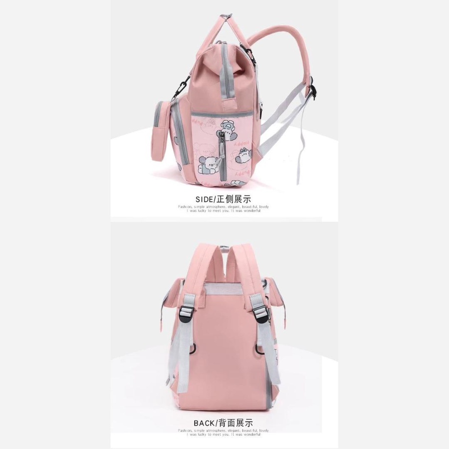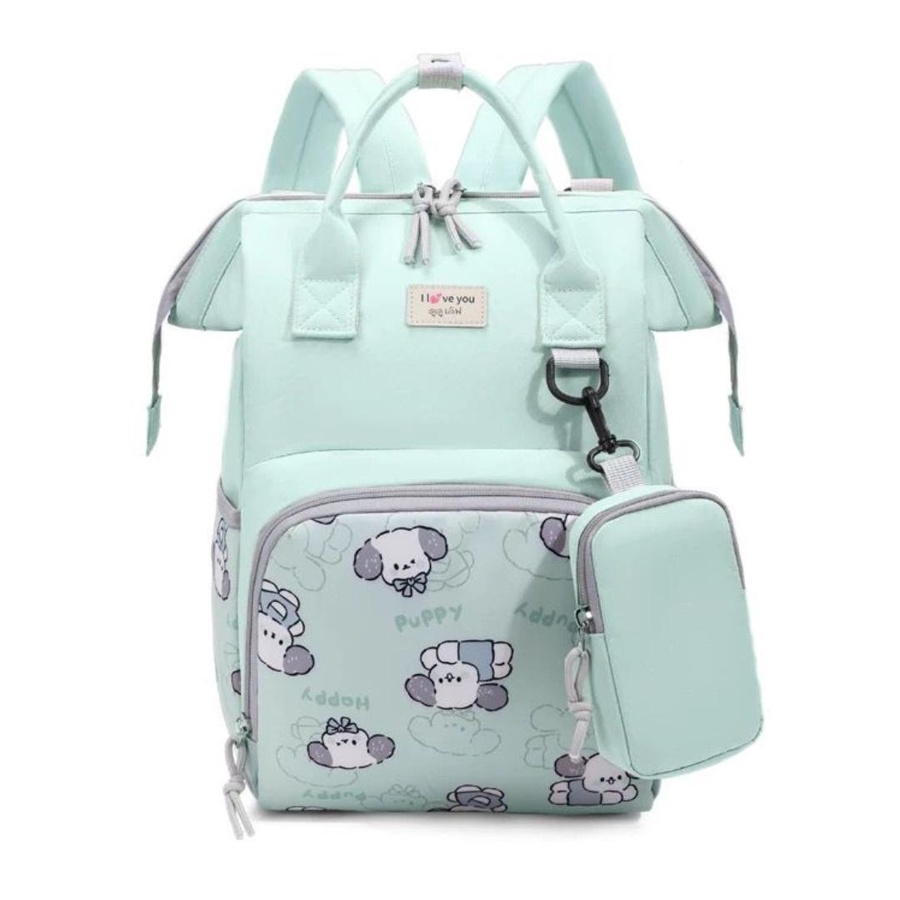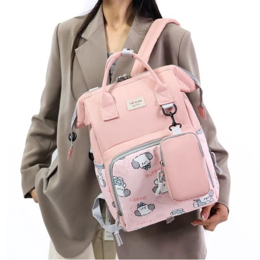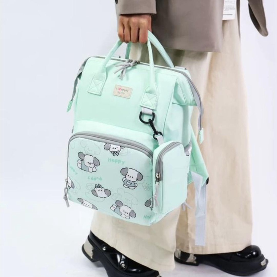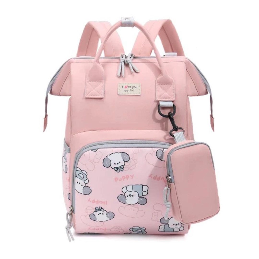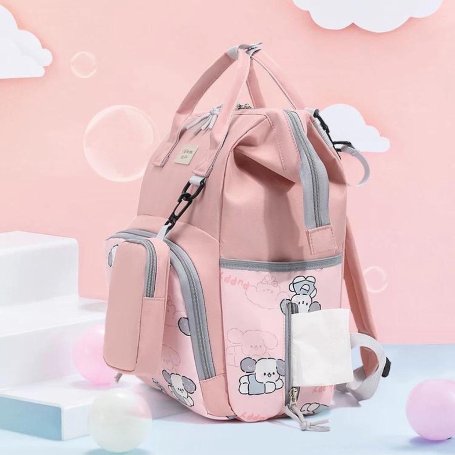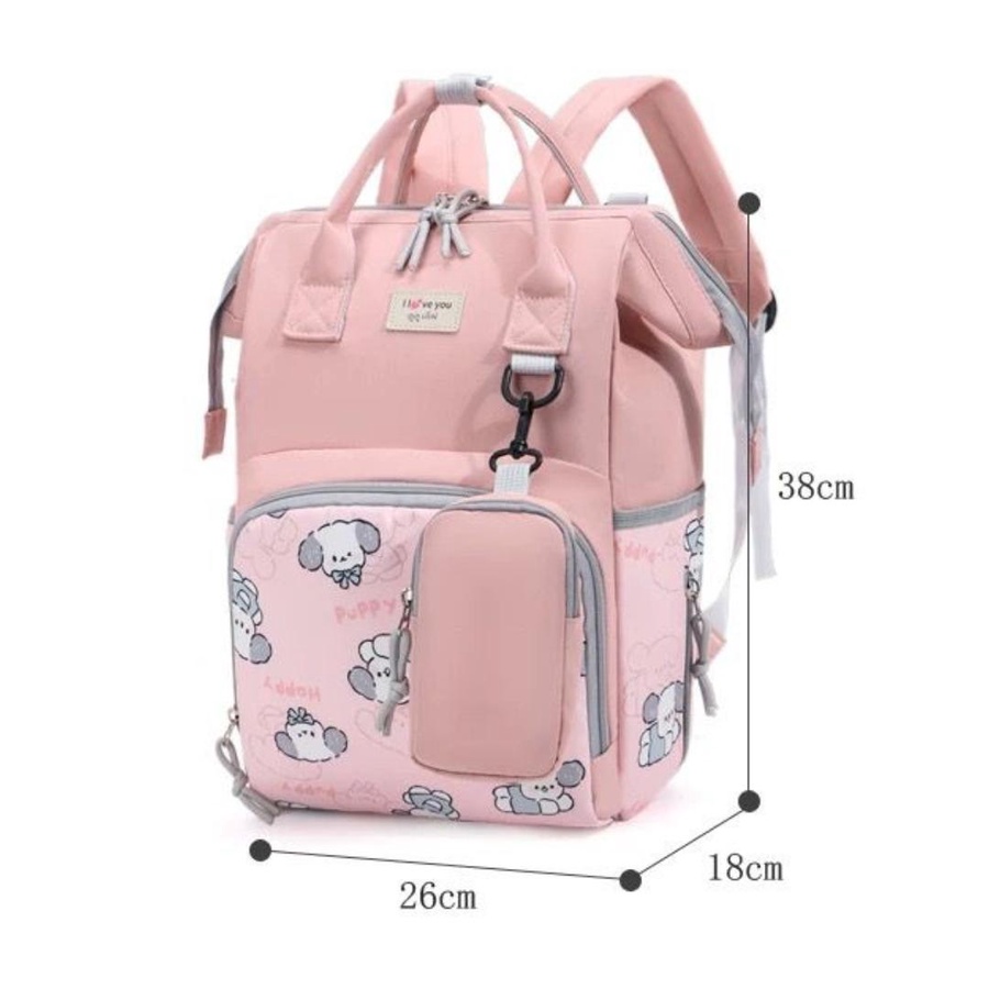 شنطة حفاضات للأمهات بتصميم كرتوني لطيف (Puppy) تجمع بين الشكل الأنيق والتنظيم العملي، علشان تبقى كل مستلزمات البيبي معاك مرتبة وسهل توصلي لها بسرعة. الشنطة مناسبة للاستخدام اليومي، للخروج، للمشاوير الطويلة، وكمان للسفر.
