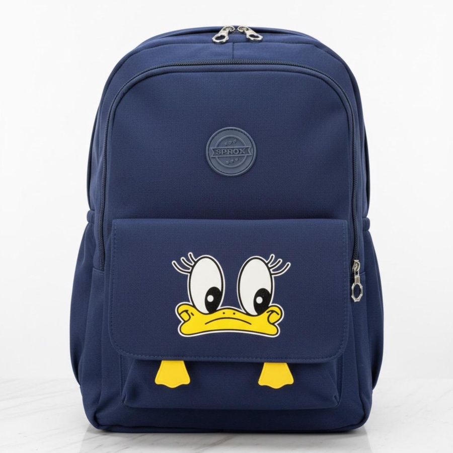 شنطة الظهر دي مثالية للبنات والأولاد اللي بيحبوا الشخصيات اللطيفة، بتصميم وجه بطة ظريف في الجيب الأمامي مع رجلين باللون الأصفر يخلوا الشنطة شكلها مرح ومميز. السعة الداخلية مناسبة لكتب المدرسة، لانش بوكس وزمزمية صغيرة، مع جيب أمامي بغطاء لحفظ المتعلقات السريعة وجيوب جانبية لزجاجة المياه أو المناديل.