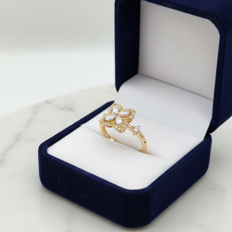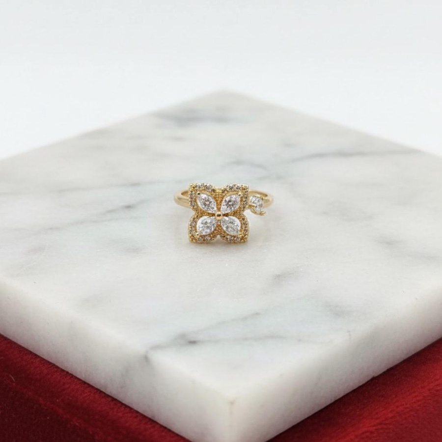 خاتم ستانلس ستيل دهبى فصوص بتصميم ورد