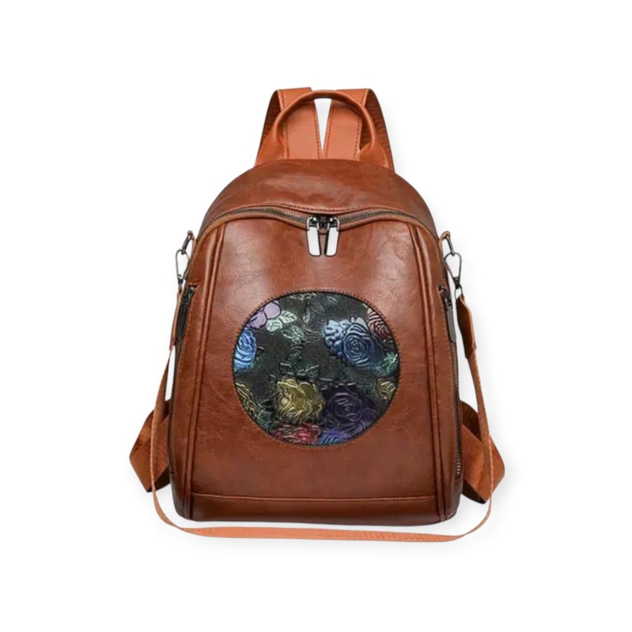 شنطة ظهر جلد "فنتيدج" (Vintage) 2 في 1 بتطريز ورد بارز