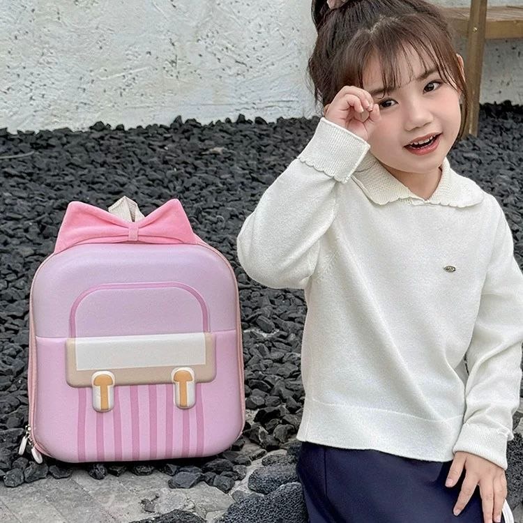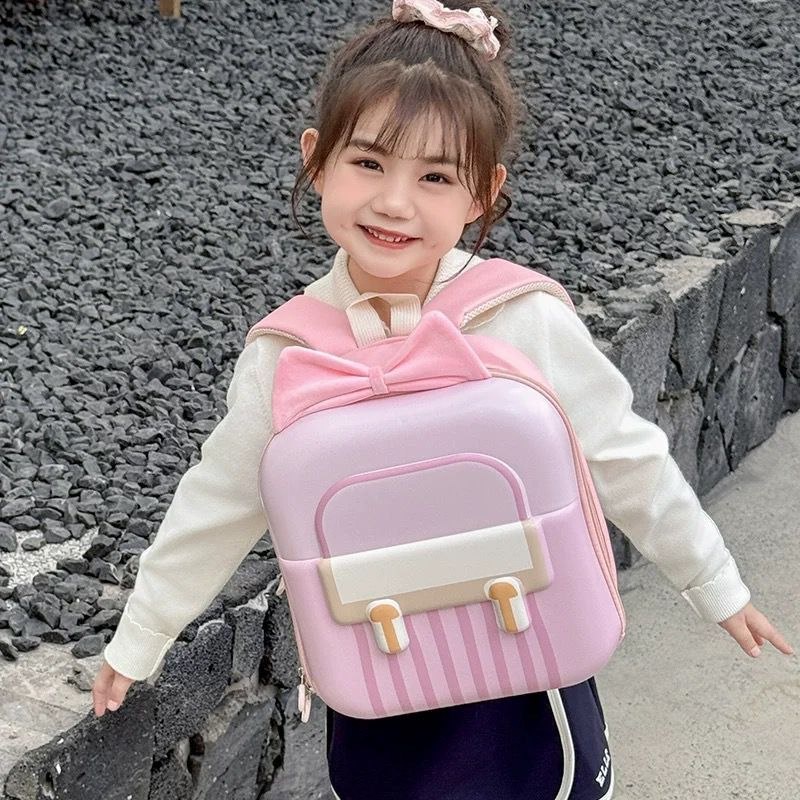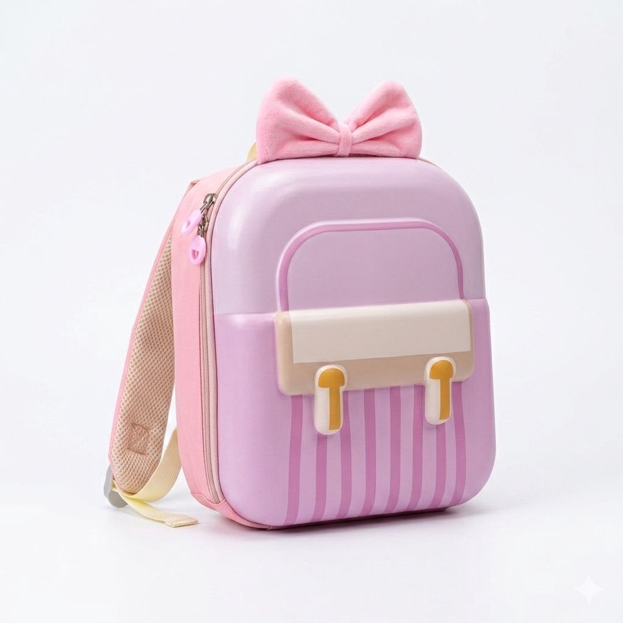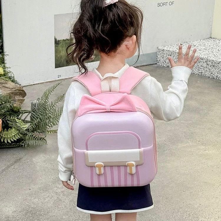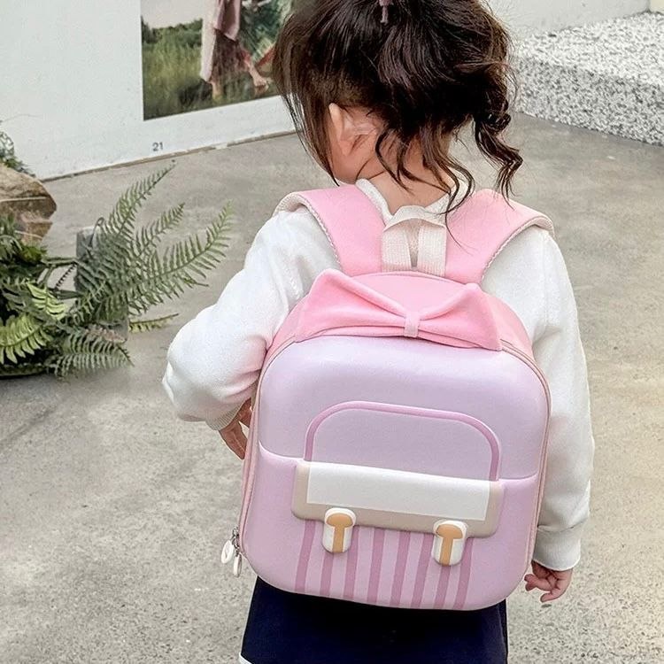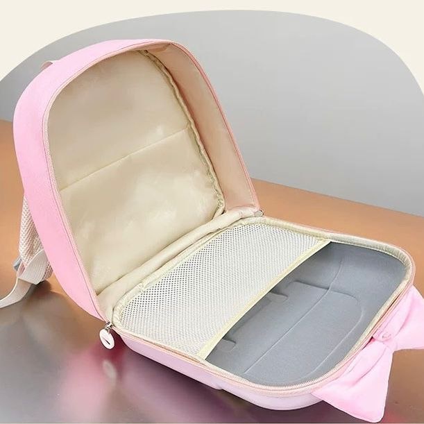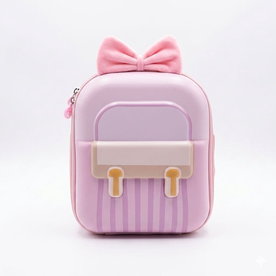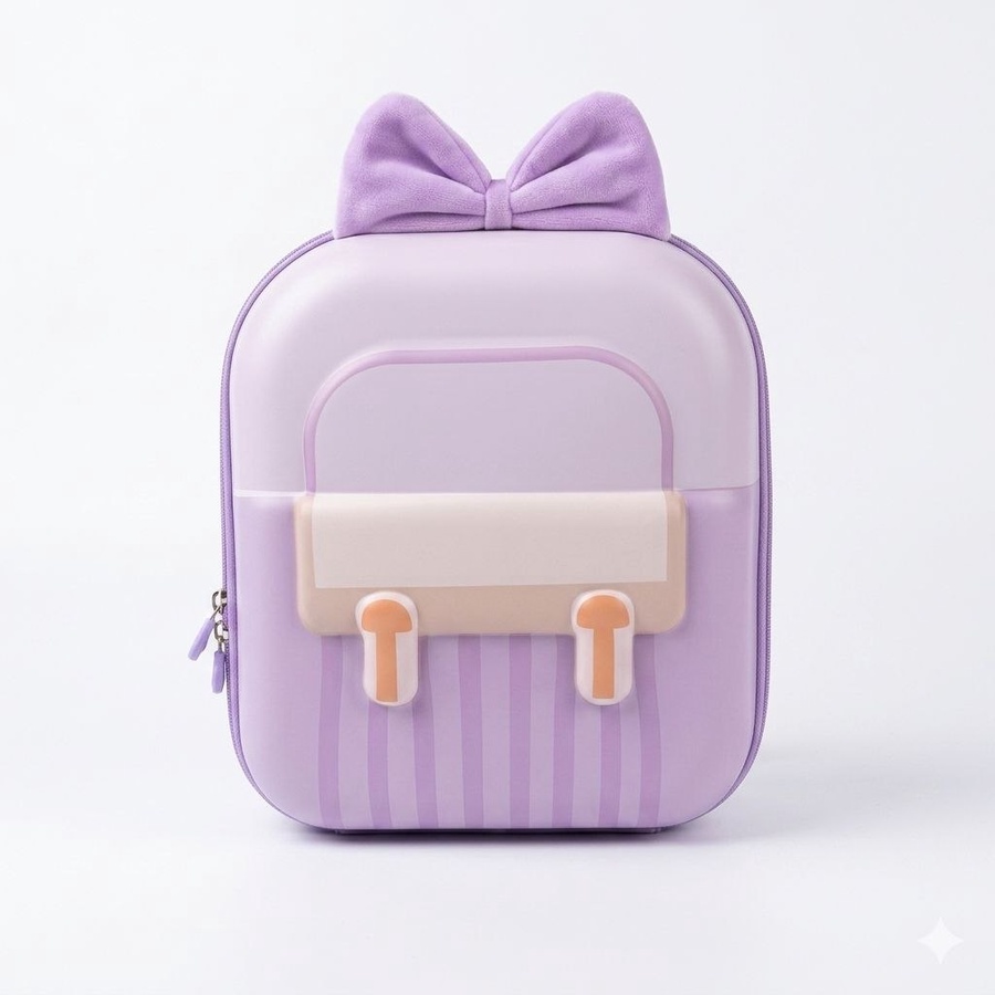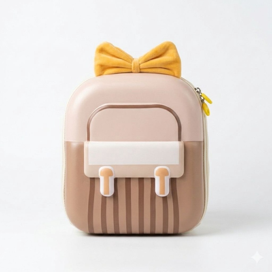 - تصميم (Hard Shell / Boxy) صلب: الحقيبة مصممة لتبقى متماسكة وتحافظ على شكلها الأنيق سواء كانت ممتلئة أو فارغة، مما يحمي محتوياتها (مثل اللانش بوكس أو الألعاب) من الضغط والهرس.