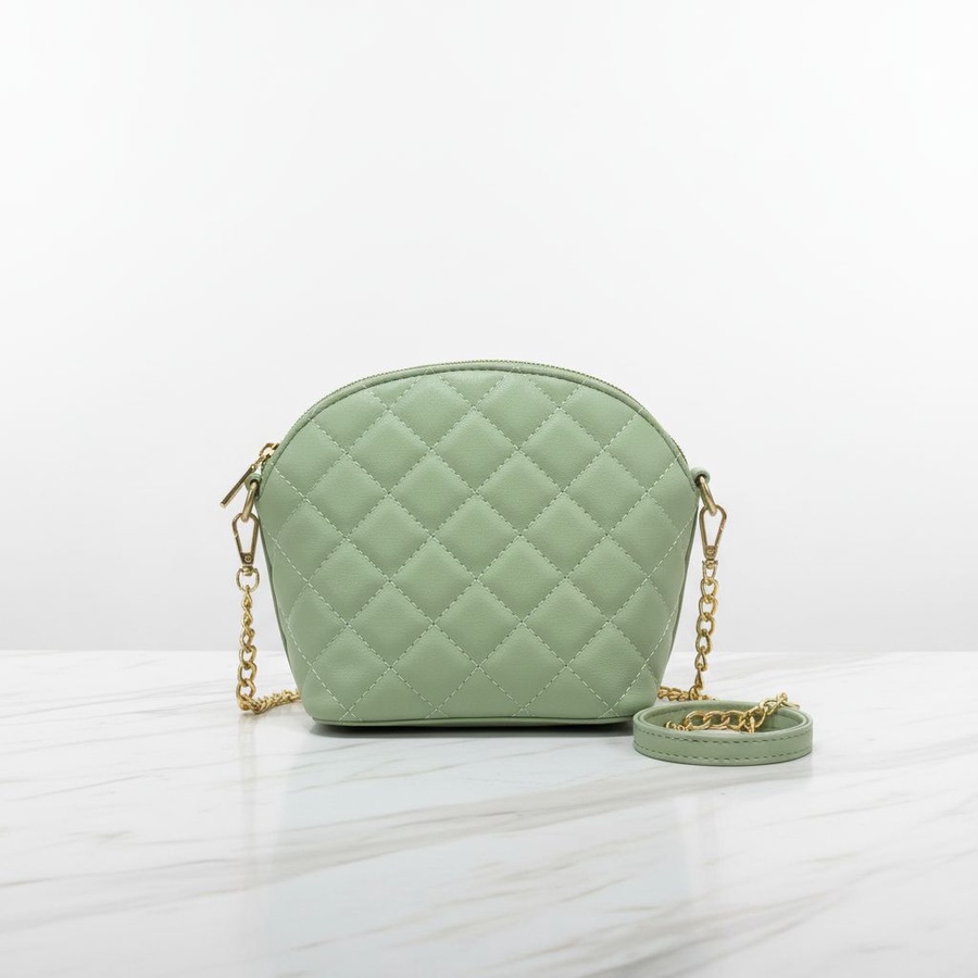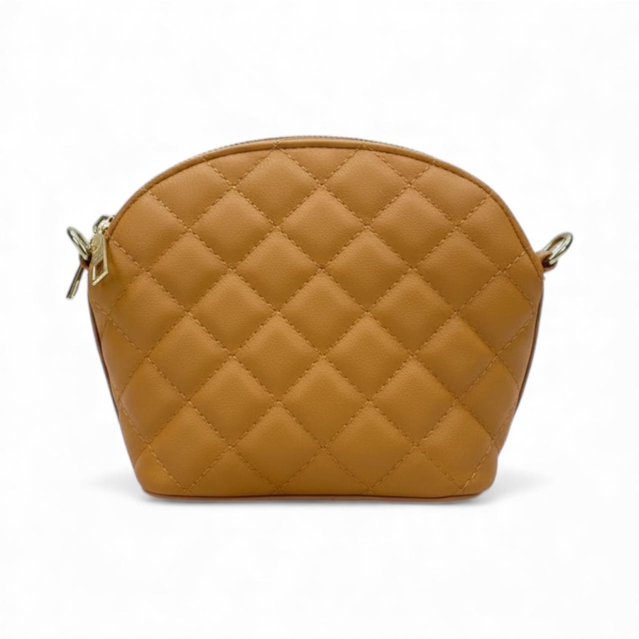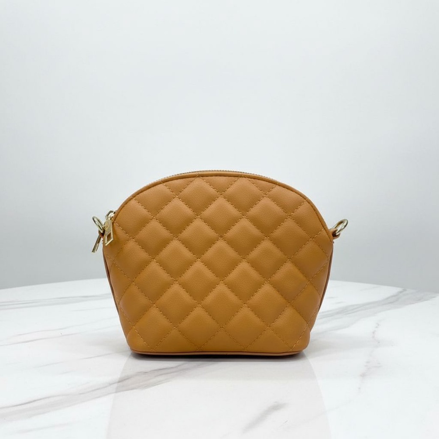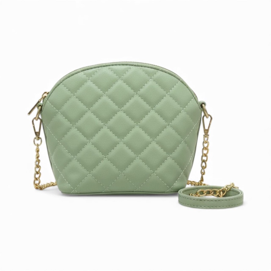 شنطة كروس جلد بتصميم شكل الصدفة وبذراع سلسلة دهبي