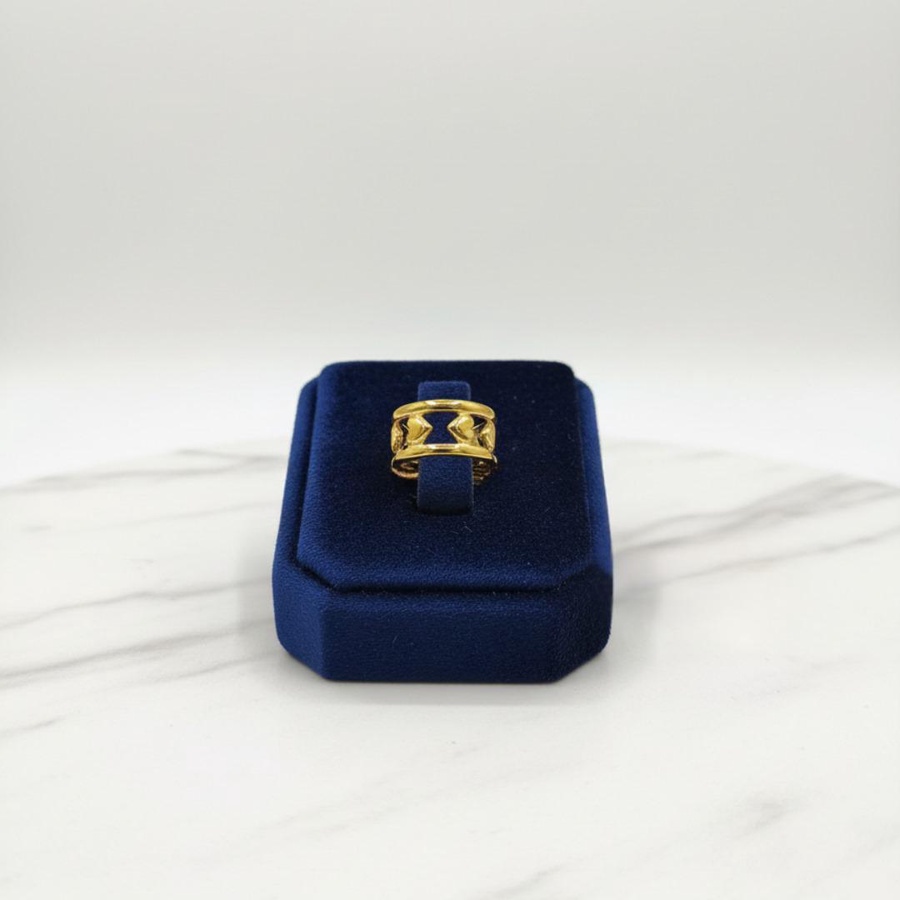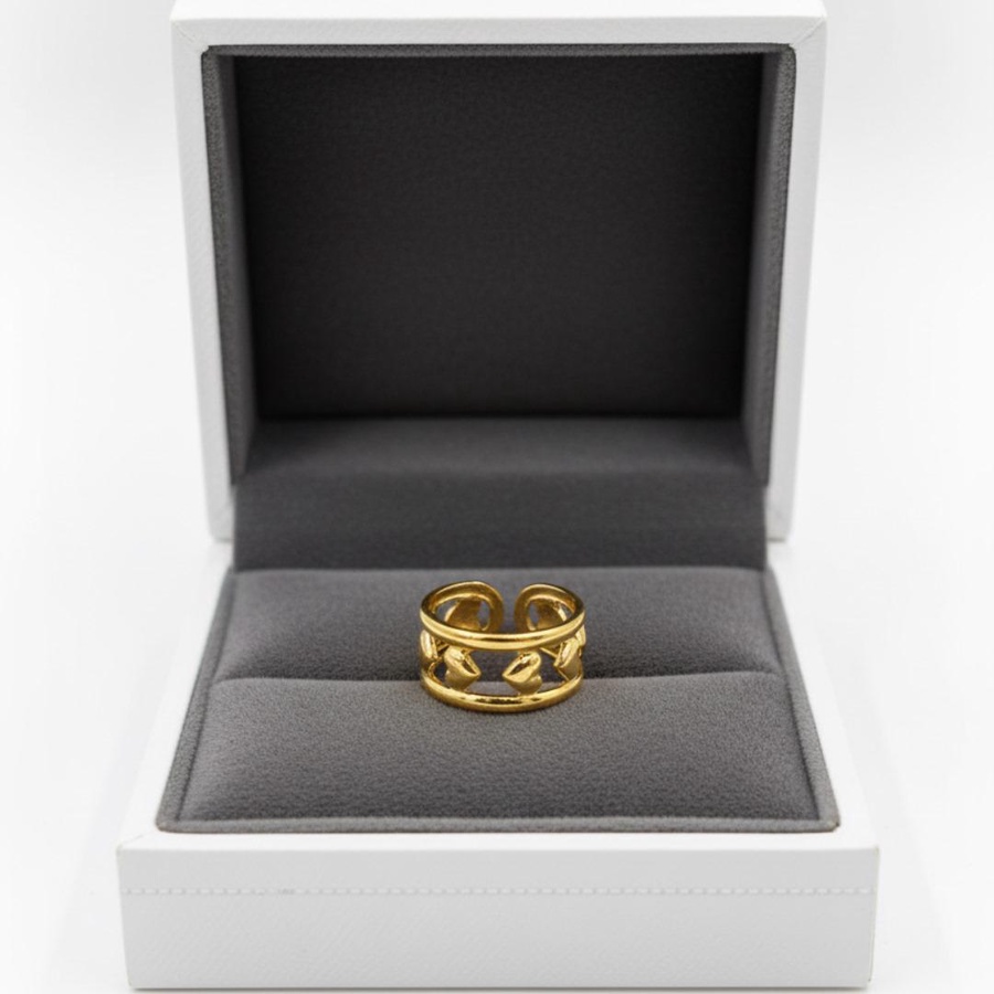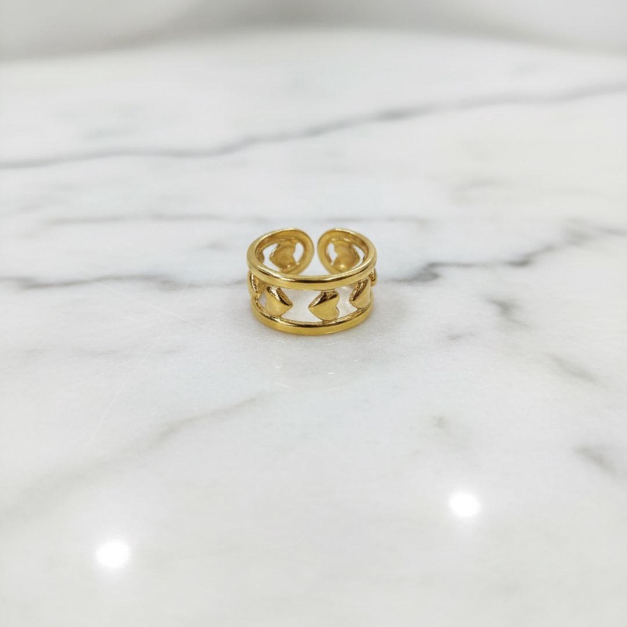 خاتم ستانلس ستيل دهبى بتصميم عريض مفتوح قلوب مفرغة قابل للتوسيع ليناسب جميع المقاسات