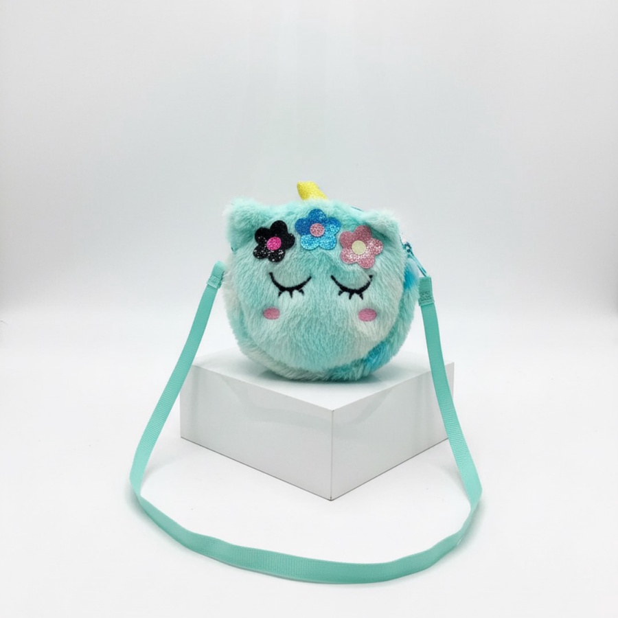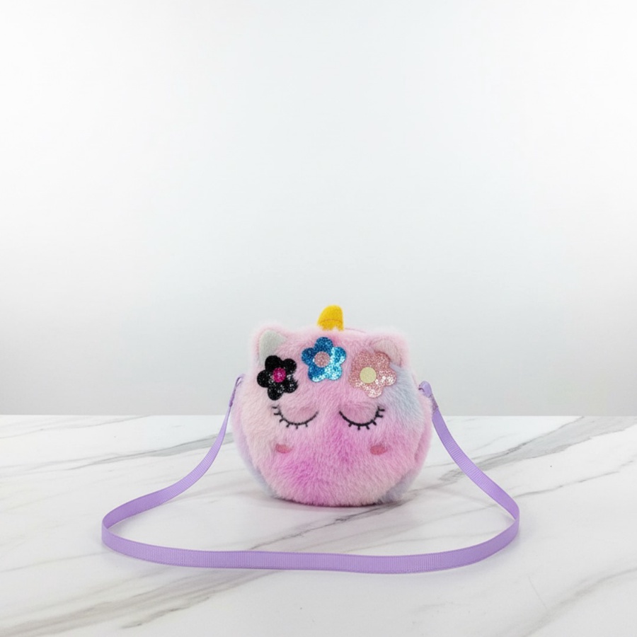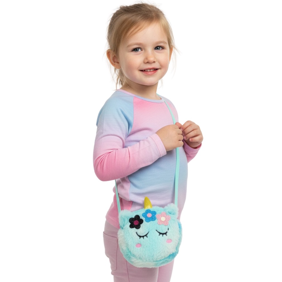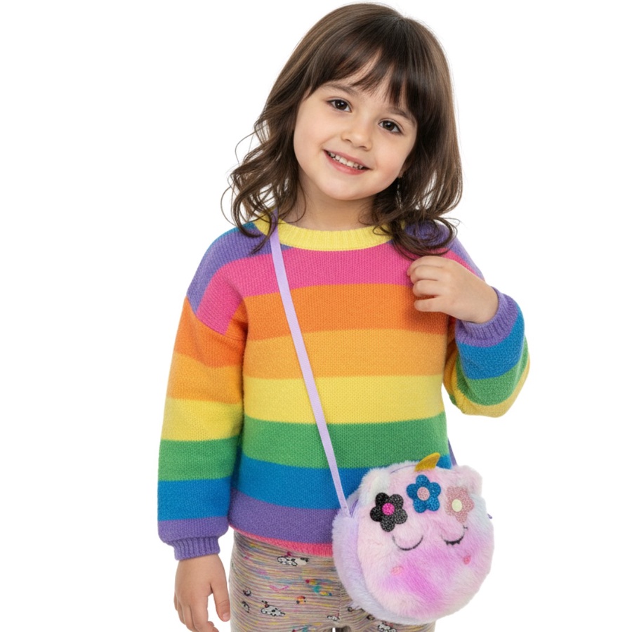 حقيبة كتف بناتي فرو على شكل يونيكورن لطيف بألوان قوس قزح، مثالية للبنات في الخروجات والرحلات. خامة ناعمة مريحة للأطفال مع حجم عملي لوضع الأغراض الصغيرة،