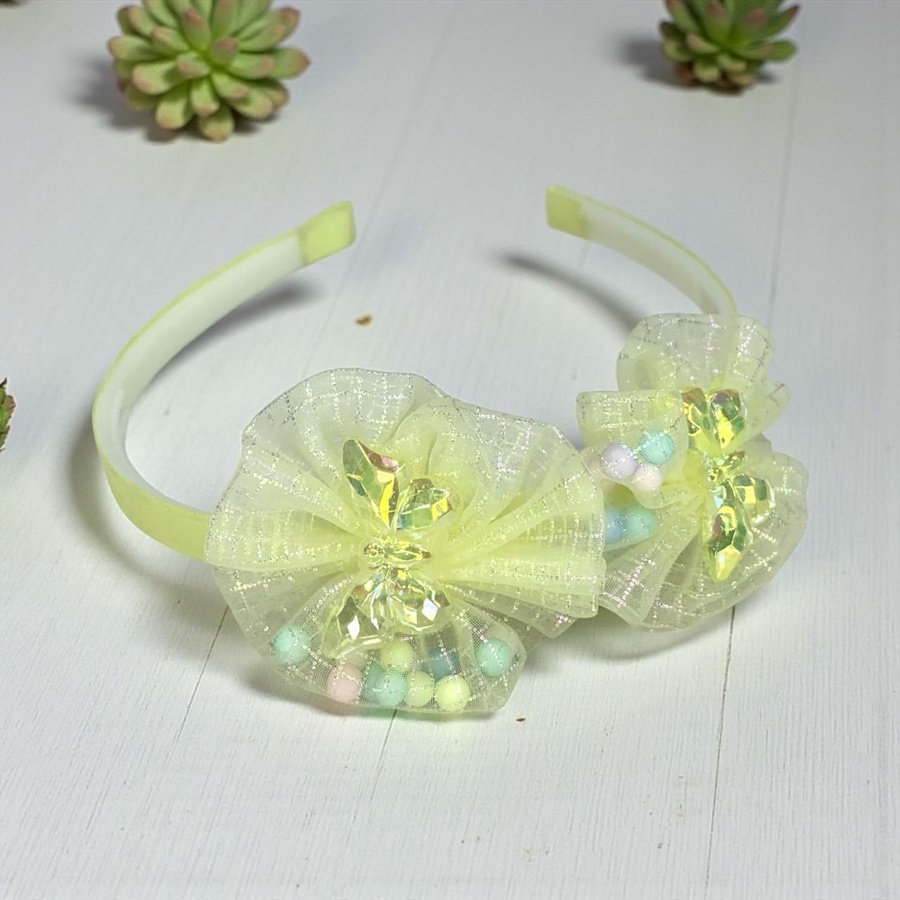 طوق شعر بتصميم وردة دانتل وفراشة بارزة