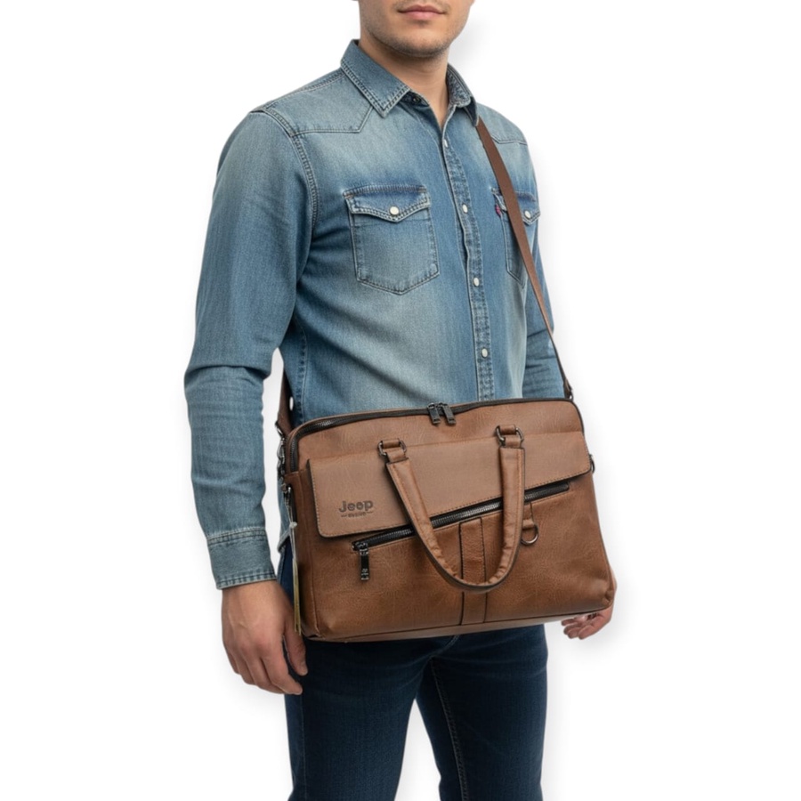 شنطة يد لابتوب جلد رجالى jeep ولها يد كروس
