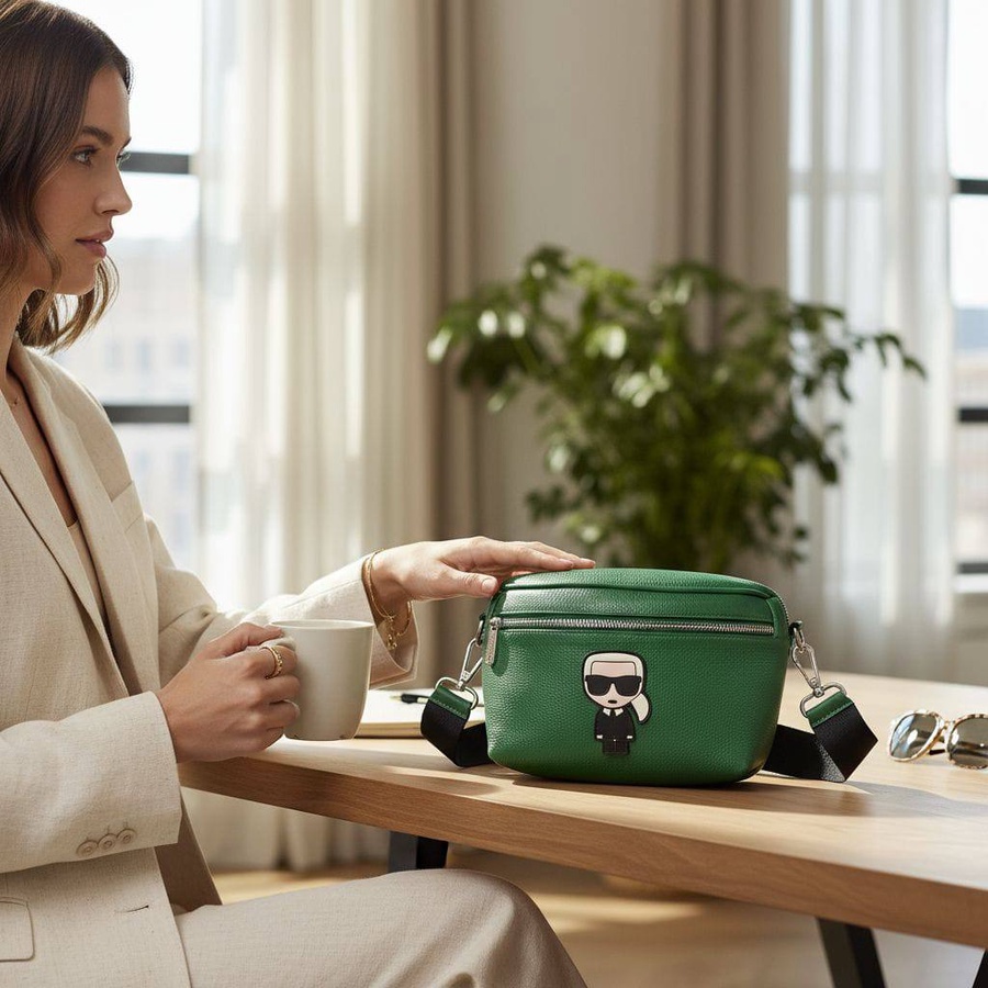 شنطة ويست /كروس من ماركة Karl بتدي لوك كاجوال شيك للبنات اللي بتحب البراندات والستايل العملي في نفس الوقت، تصميمها بسيط وراقي ينفع يتلبس على جينز، . تقدري تلبسيها حوالين الوسط أو كروس على البطن عشان تسيبي إيدِك فاضية وإنتِ في الجامعة، الشوبينج أو التمشية.