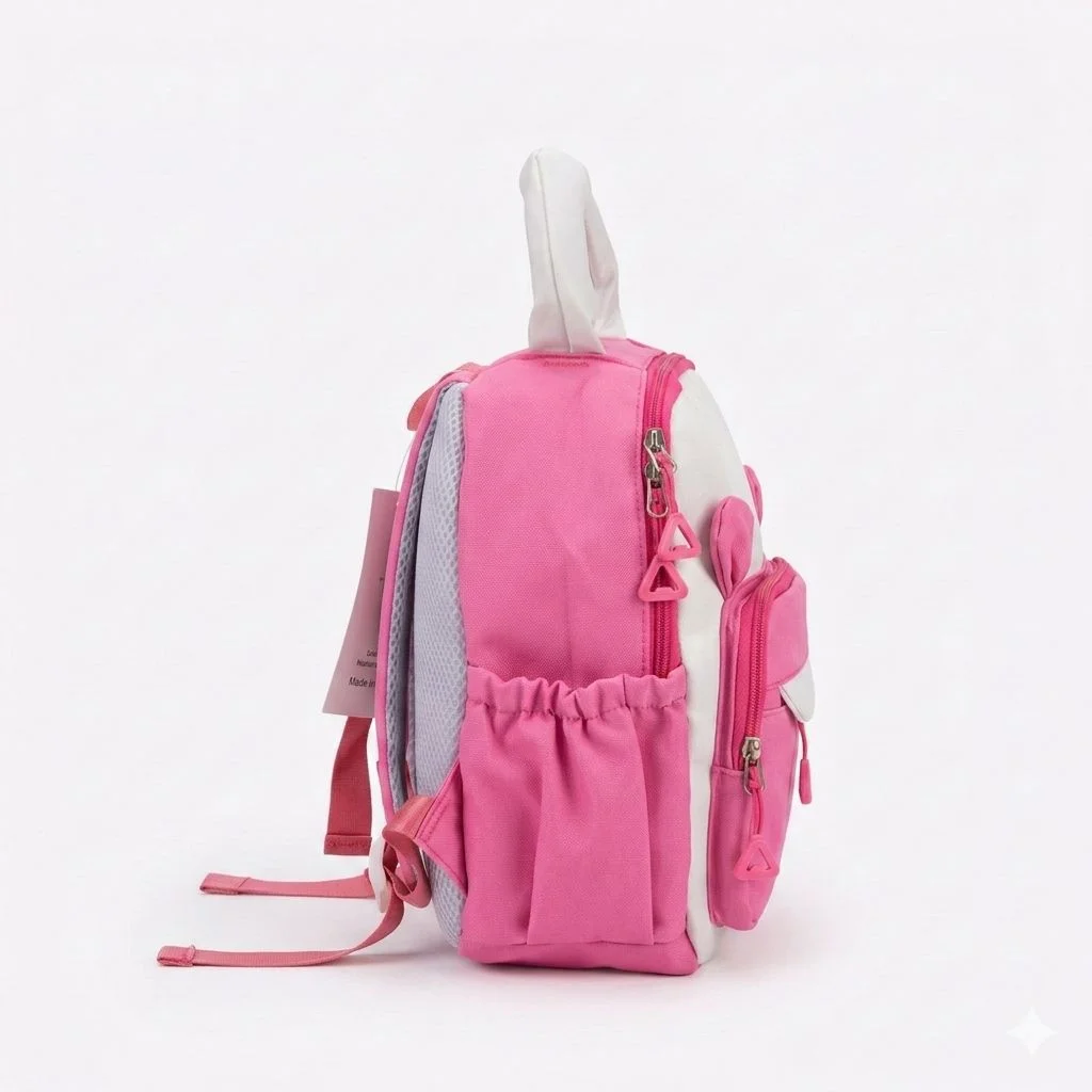 شنطة باك أطفالى تمنح طفلك إطلالة مرحة ومميزة. مصنوعة من خامات عالية الجودة وخفيفة الوزن لتناسب الاستخدام اليومي فى الحضانة والرحلات. تتميز بمساحة داخلية واسعة، وجيب أمامي بسحاب، وجيوب جانبية لحمل زجاجة الماء، بالإضافة إ. حمالات مريحة وقابلة للتعديل لضمان راحة الطفل طوال اليوم.
