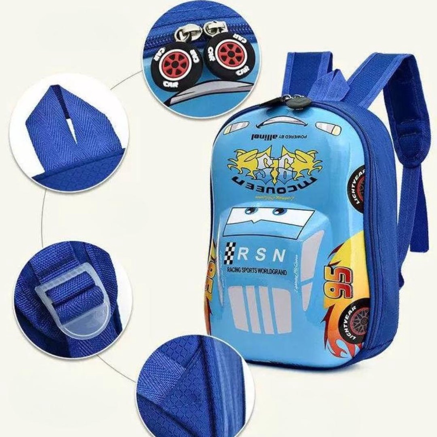 باك أطفال أكليريك بتصميم كرتوني مميز على شكل برق بنزين، اختيار مثالي للأطفال اللي بيحبوا عربيات السباق والأشكال الكرتونية الجذابة.