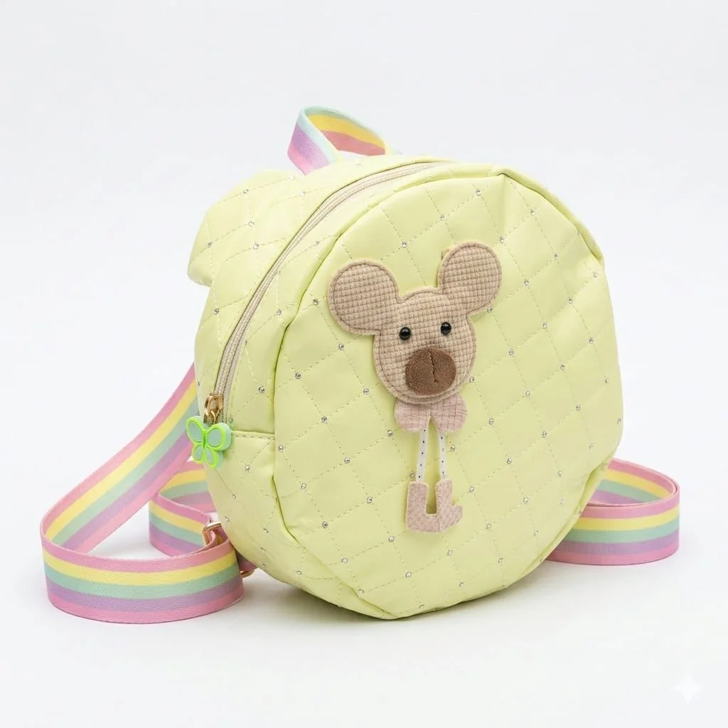 تتميز الشنطة بشكل دائري عصري مع تصميم دب كيوت في الأمام، بالإضافة إلى ألوان جميلة وأحزمة كتف مريحة مزينة بألوان مبهجة.