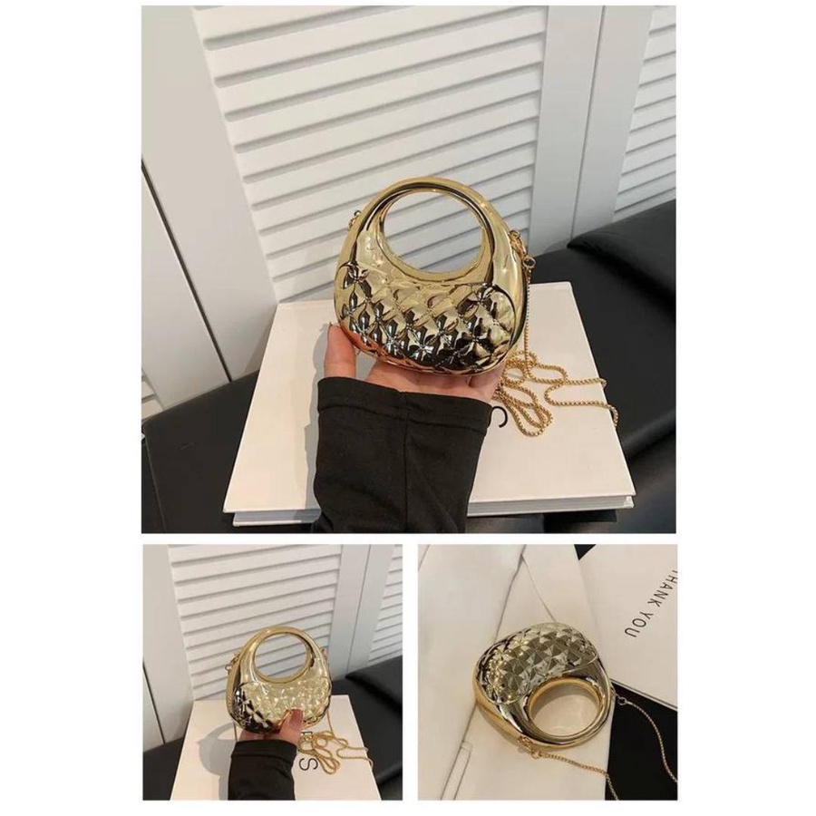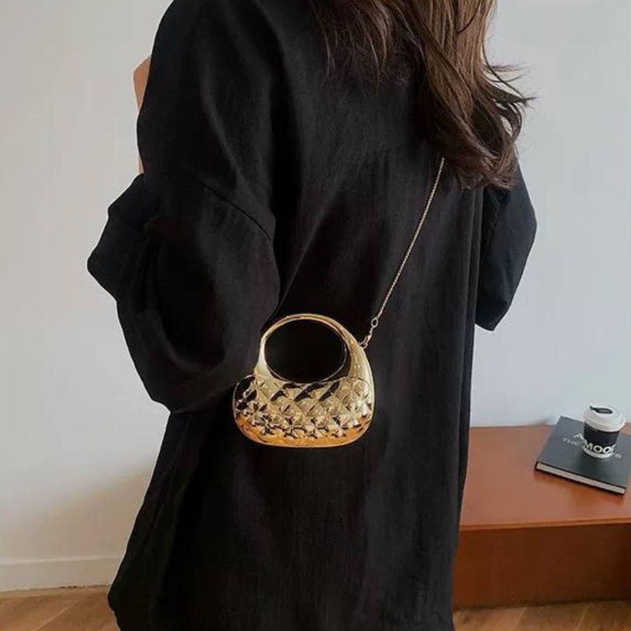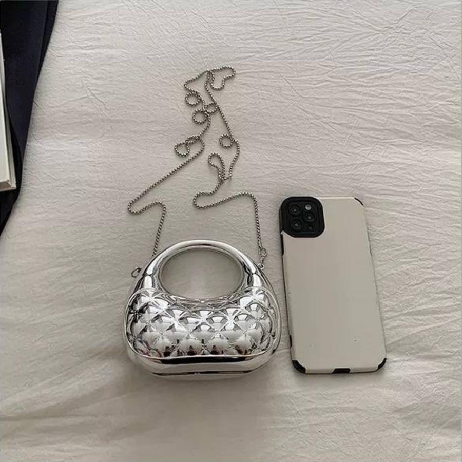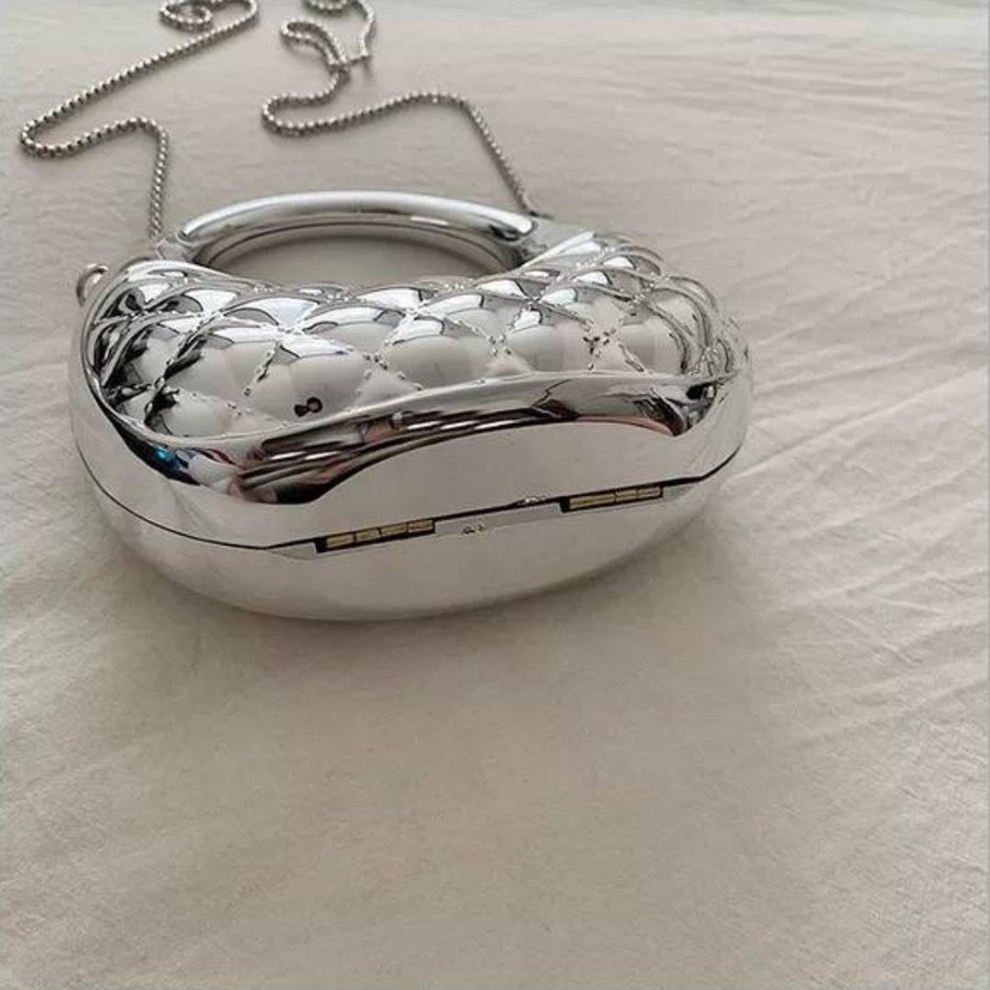 الشنطة معمولة من خامة معدنية قوية بجودة عالية، مع نقشة بارزة شيك بتدي شكل فخم ومميز