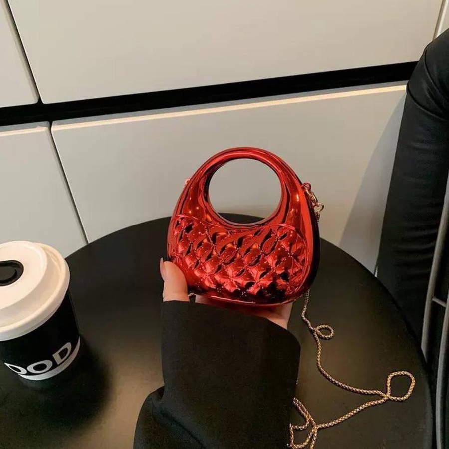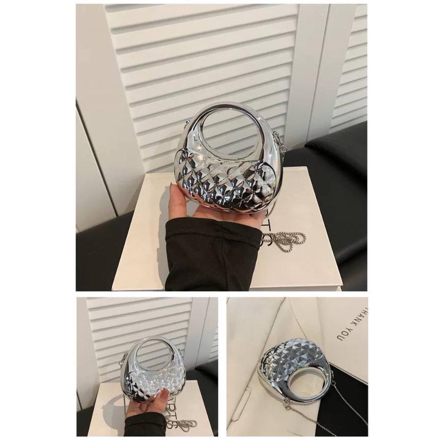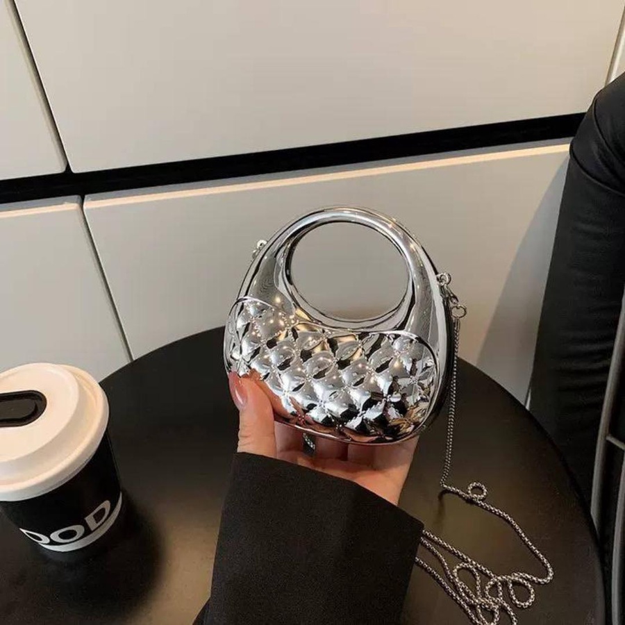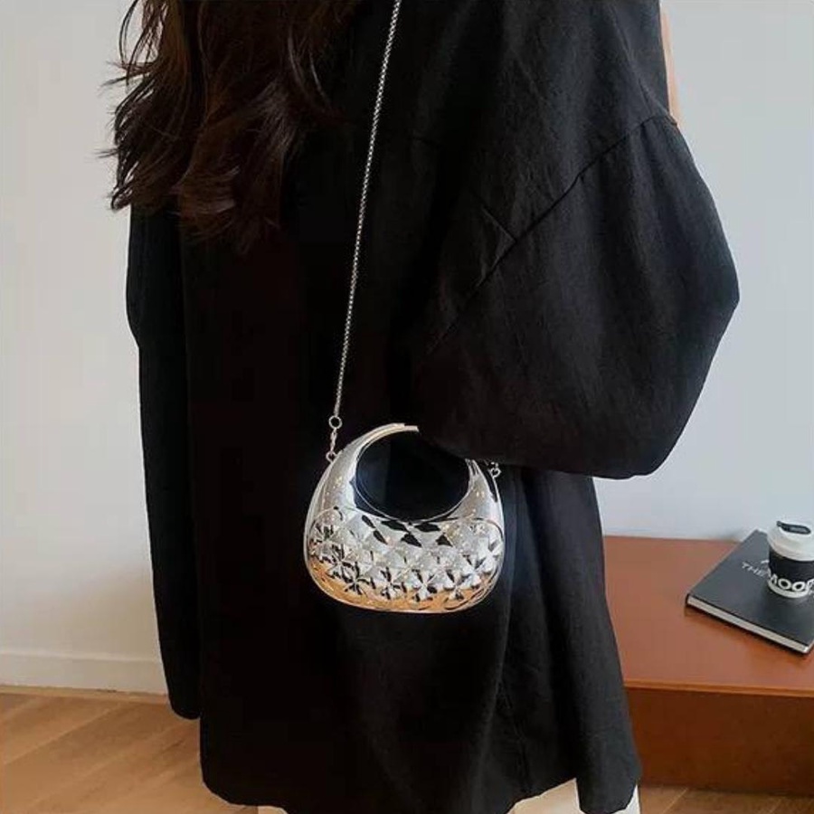الشنطة معمولة من خامة معدنية قوية بجودة عالية، مع نقشة بارزة شيك بتدي شكل فخم ومميز