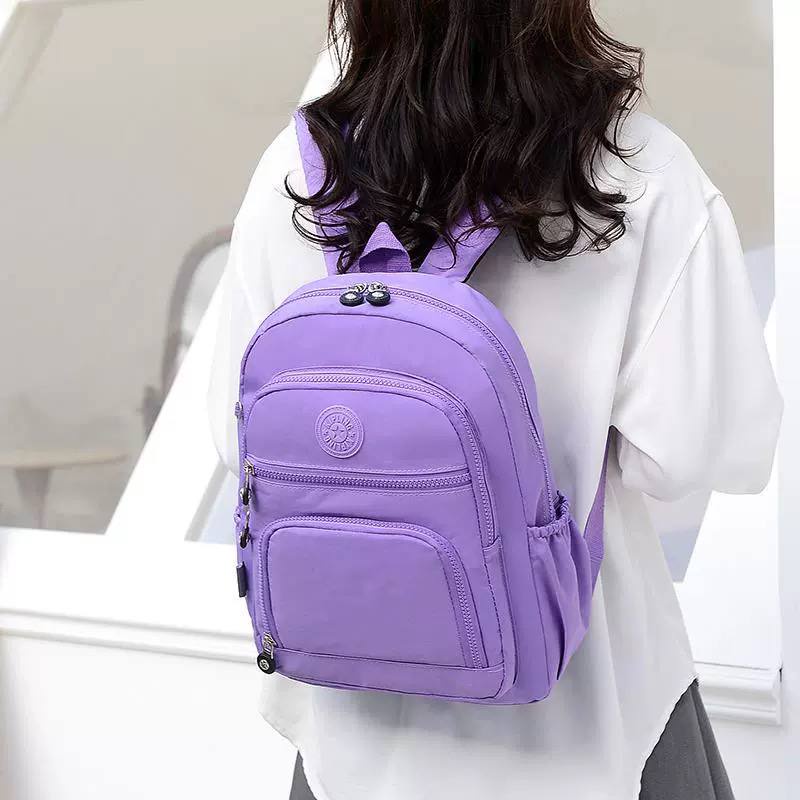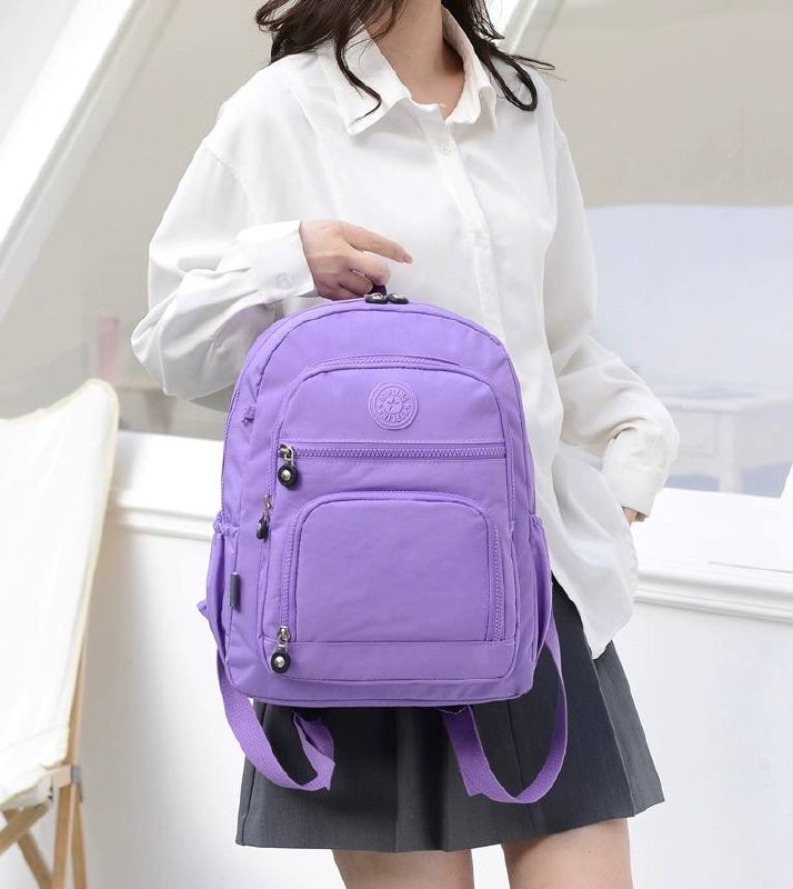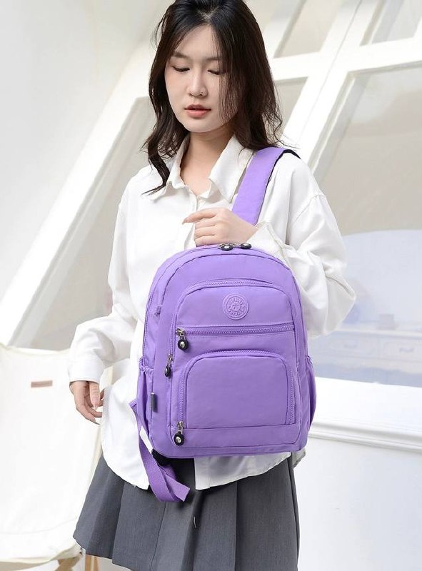 شنطة ظهر حريمى كاجوال بنفسجى بدلاية دب لطيفة، متعددة الجيوب بسحاب، خامة متينة خفيفة مناسبة للجامعة، الدروس والخروجات اليومية وتنظيم المتعلقات.