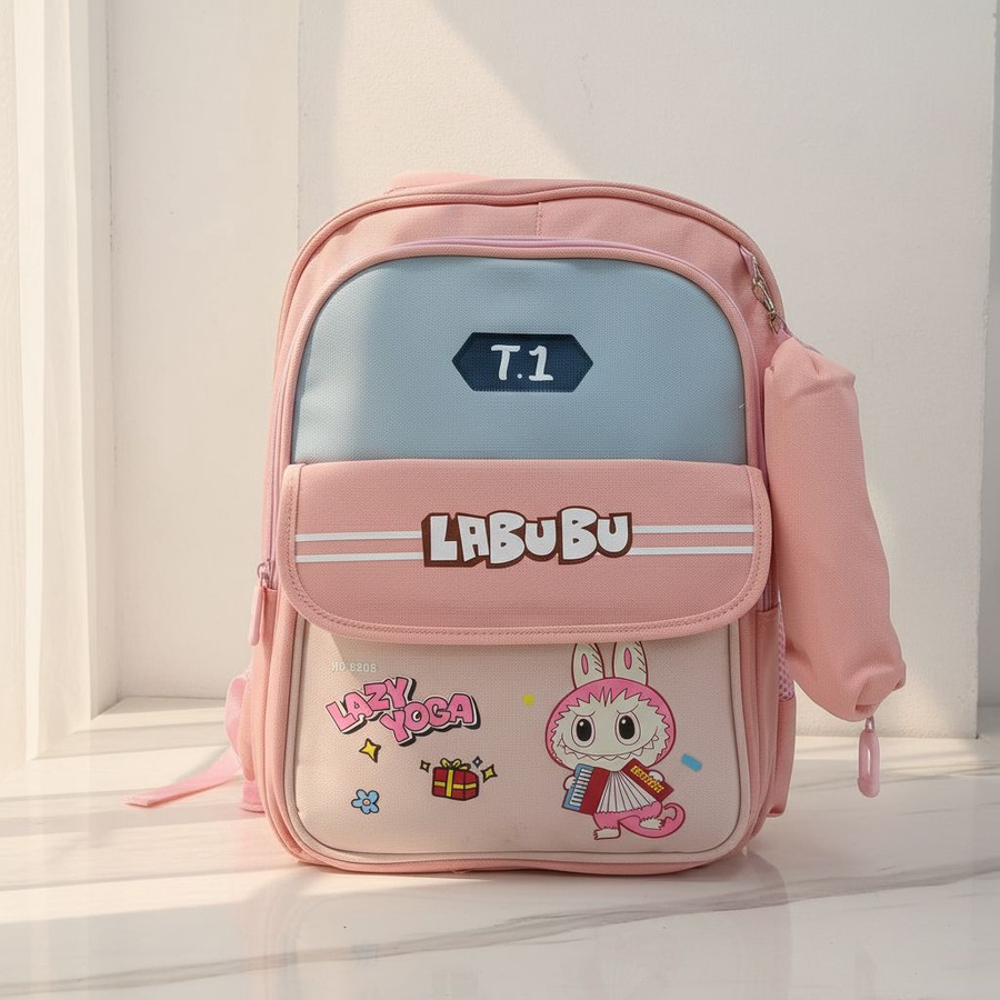 شنطة الظهر LABUBU دي معمولة مخصوص للأطفال في المرحلة الابتدائية، بتصميم مستطيل منظم وطباعة كارتونية ظريفة في الجيب الأمامي تخليها محببة جدًا للأولاد والبنات. الجيب الأمامي الكبير بغطاء يسهل على الطفل يفتح ويقفل، مع جيب رئيسي واسع للكتب والكشاكيل، وجيوب جانبية لزجاجة المياه بالإضافة لمقلمة جانبية بنفس لون الشنطة للأقلام والأدوات.