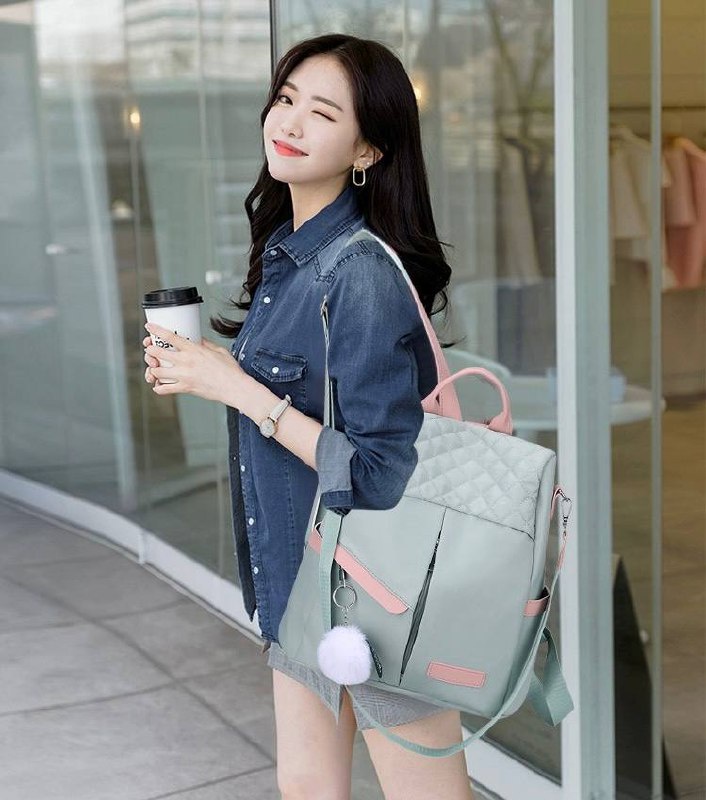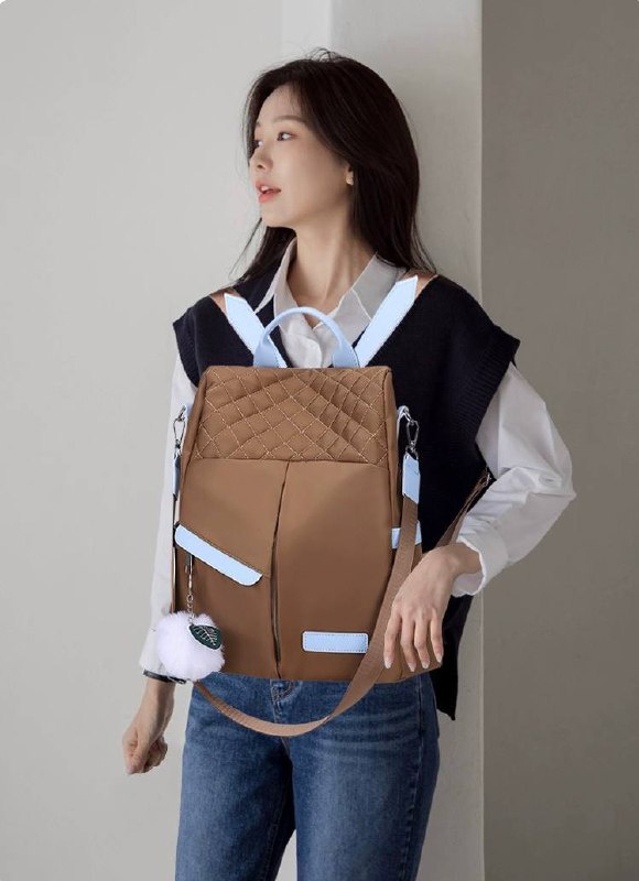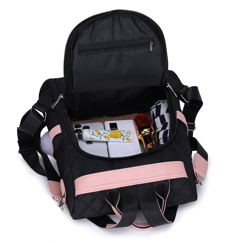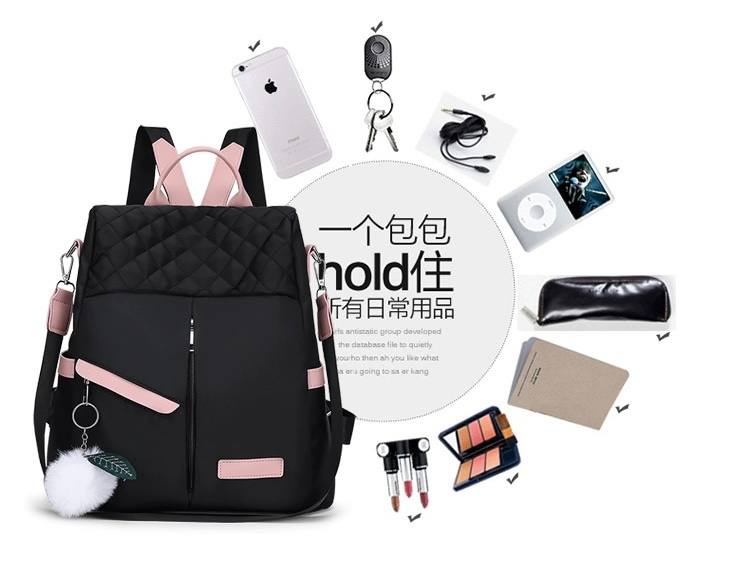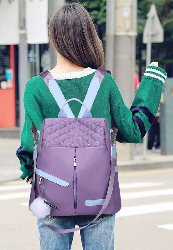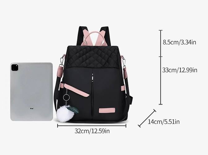 شنطة ظهر حريمى كاجوال بتصميم مبطن شيك، خامة متينة مقاومة للماء مع جيوب أمامية وجانبية وإكسسوار فرو، مثالية للجامعة، الشغل والخروجات اليومية