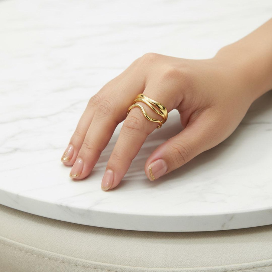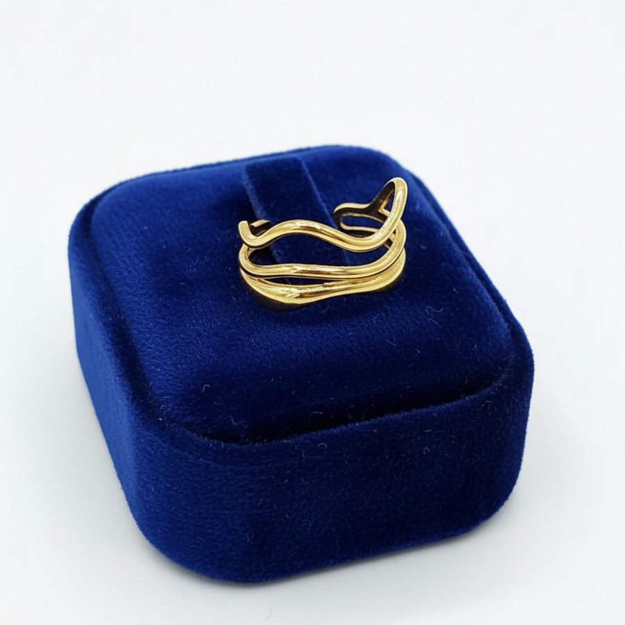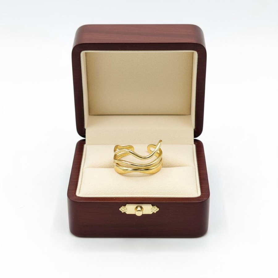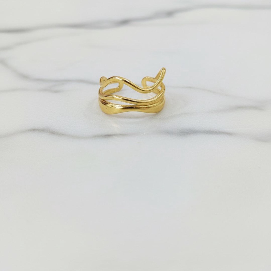 خاتم ستانلس ستيل دهبى بتصميم خطوط منحنية ثلاثى الطبقات قابل للتوسيع ليناسب جميع المقاسات